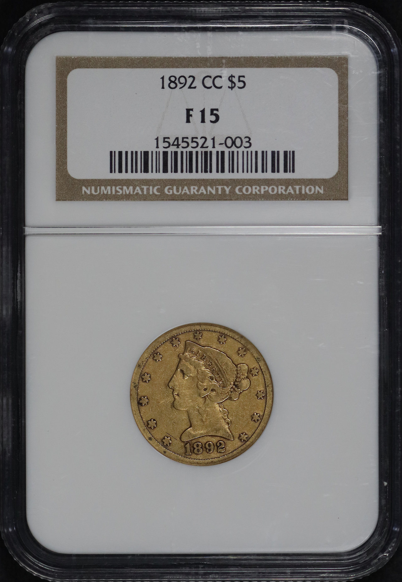1892-CC Liberty Head $5 NGC F-15.