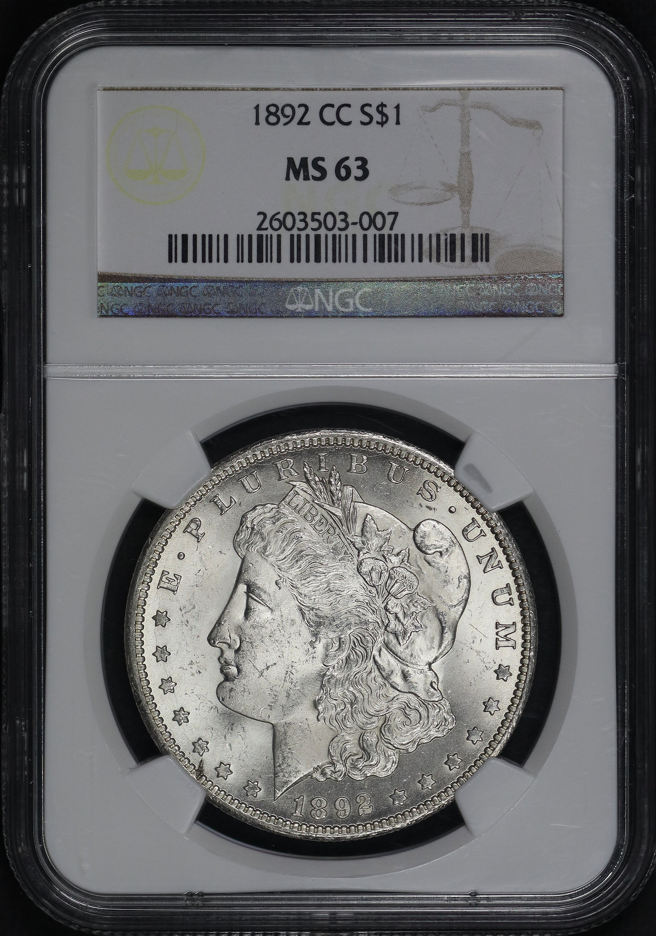 1892-CC Morgan Dollar NGC MS-63