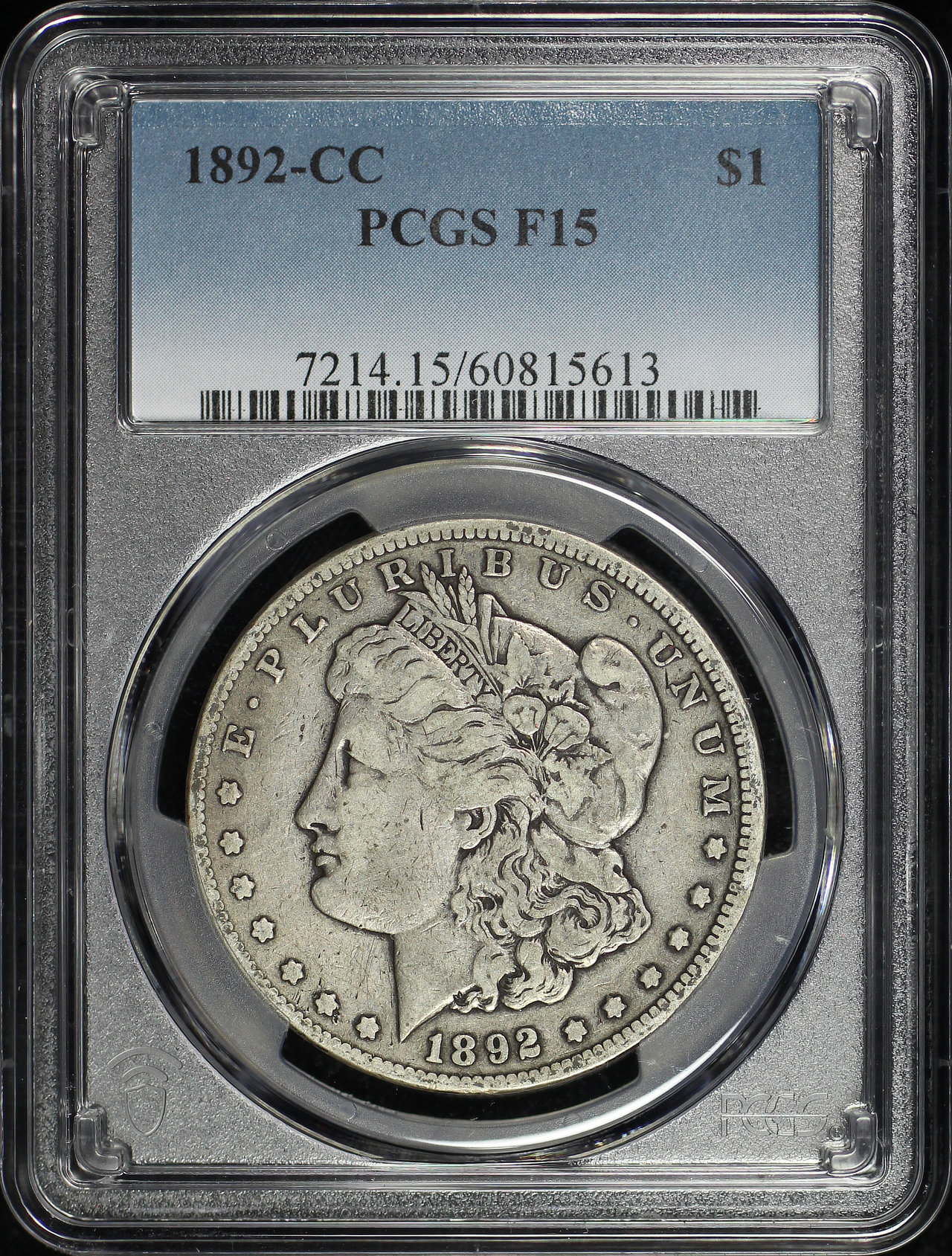 1892-CC Morgan Dollar PCGS F-15 designed by George T. Morgan.