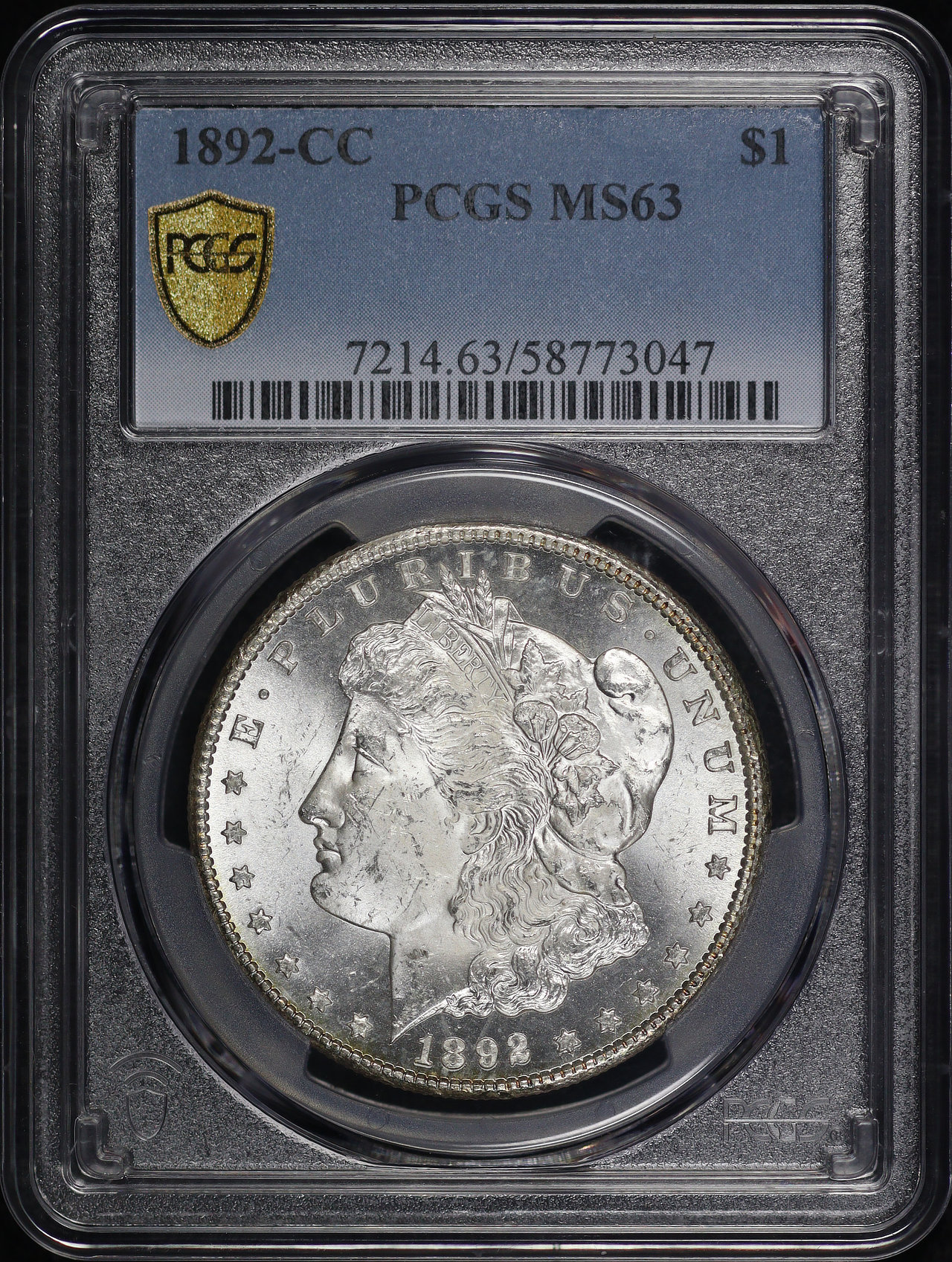 1892-CC Morgan Dollar PCGS MS-63 designed by George T. Morgan.