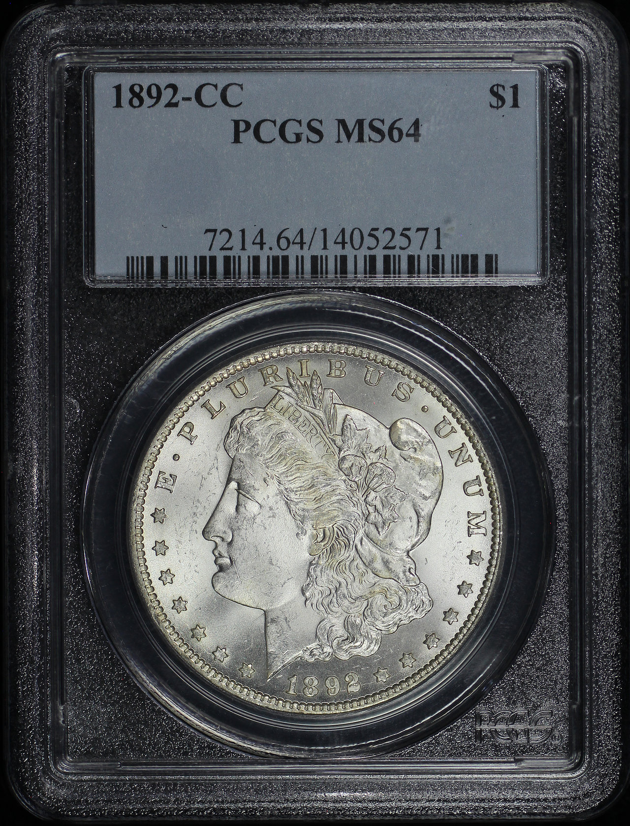 1892-CC Morgan Dollar PCGS MS-64 designed by George T. Morgan.