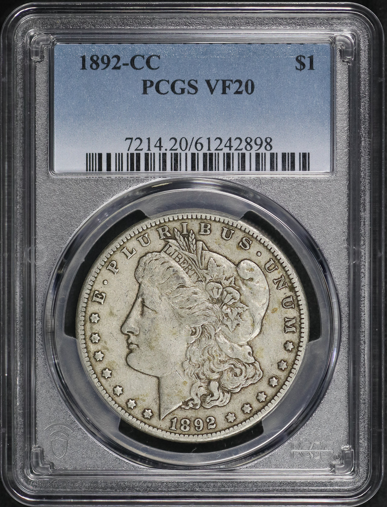 1892-CC Morgan Dollar PCGS VF-20 designed by George T. Morgan.