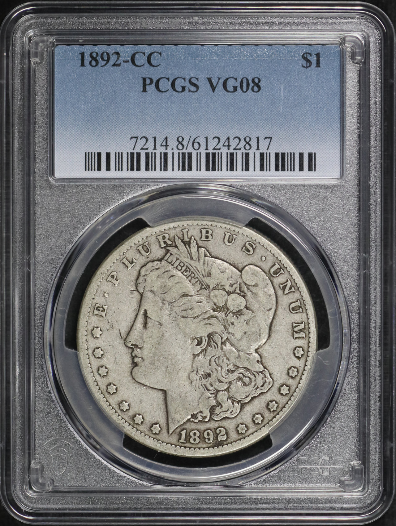 1892-CC Morgan Dollar PCGS VG-08 designed by George T. Morgan.