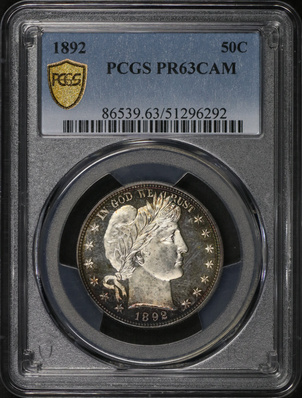 50C 1892 Barber Half Dollar PCGS PR-63 CAM