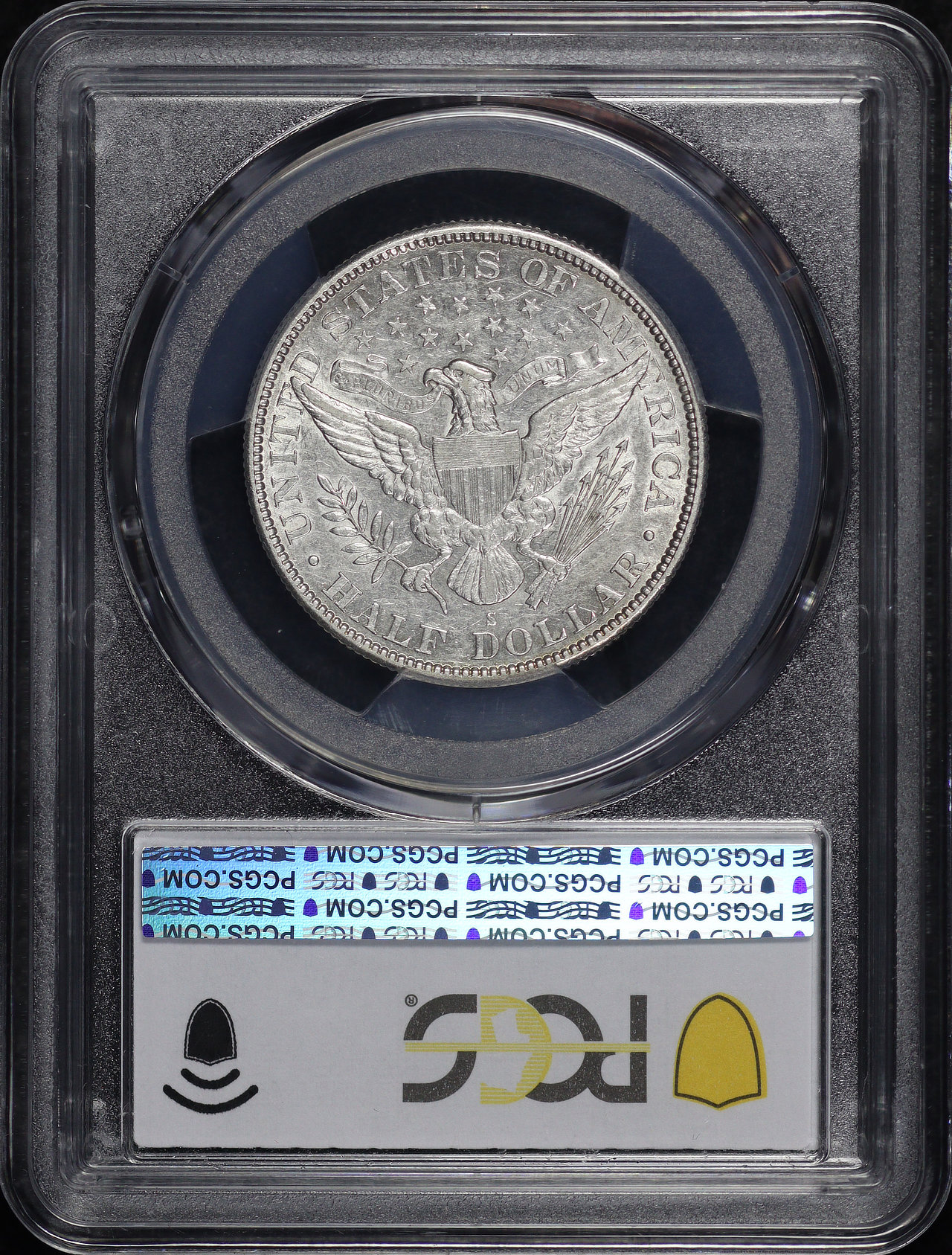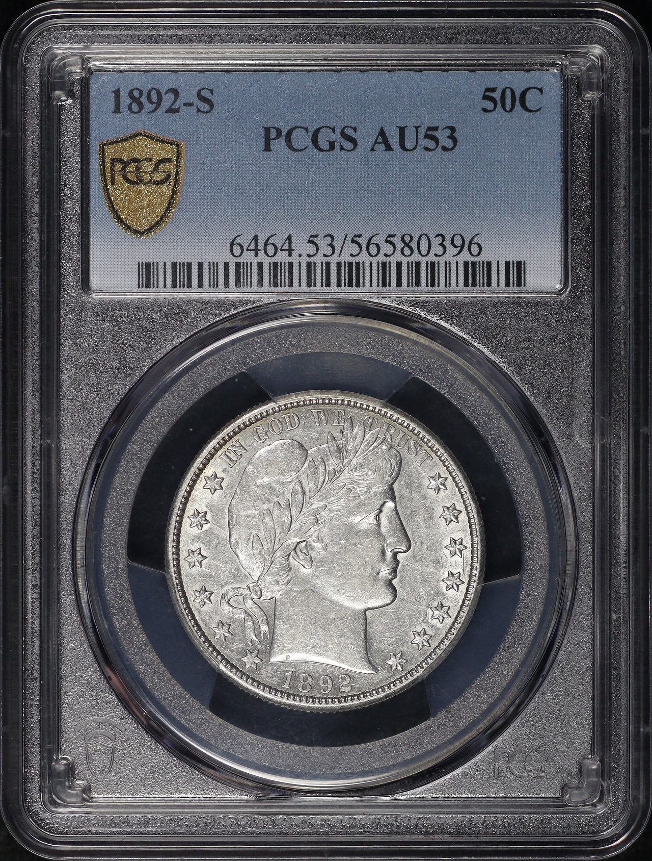 1892-S Barber Half Dollar PCGS AU-53 designed by Charles E. Barber.