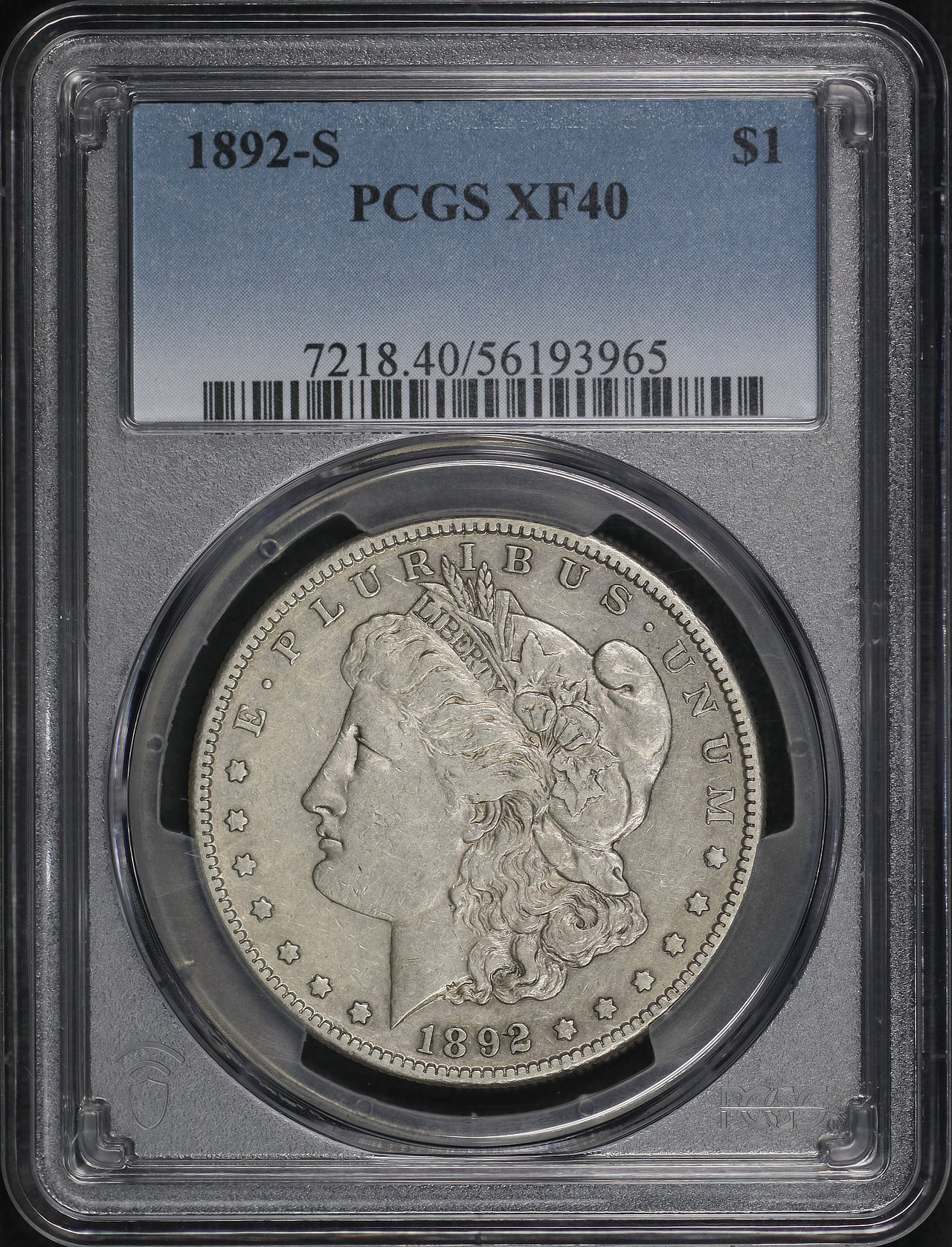 1892-S Morgan Dollar PCGS XF-40 designed by George T. Morgan.