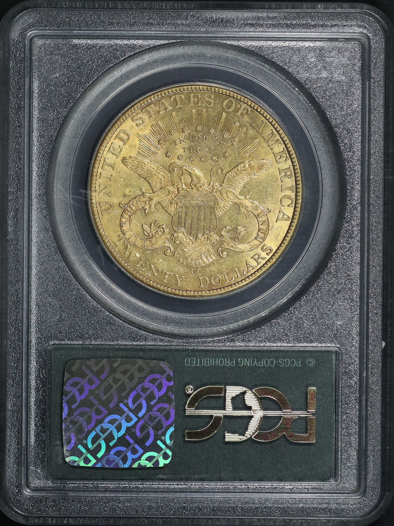 1893-CC Liberty Head $20 Type 3 PCGS AU-53 CAC Old Green Holder designed by James Barton Longacre.