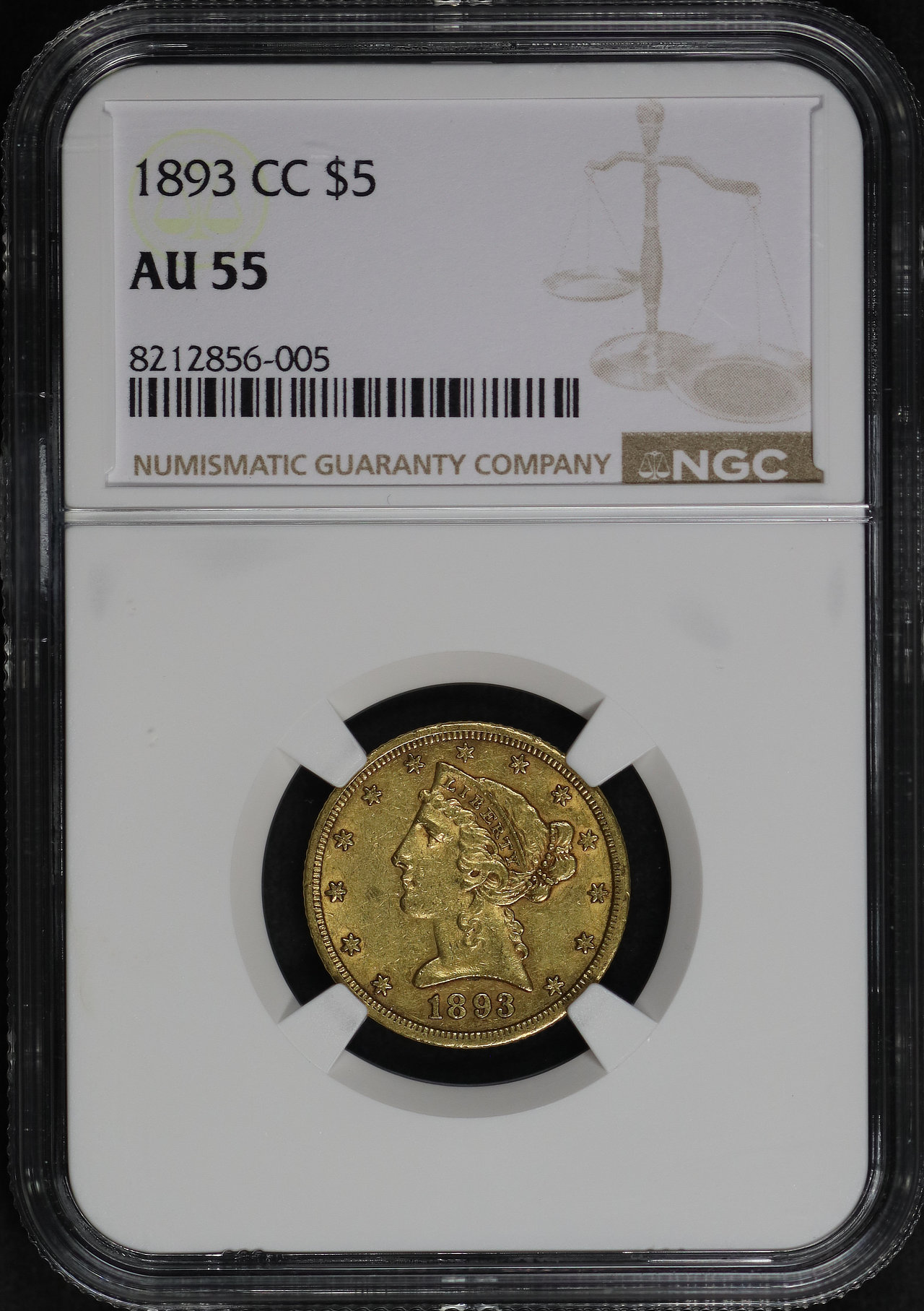 1893-CC Liberty Head $5 NGC AU-55.