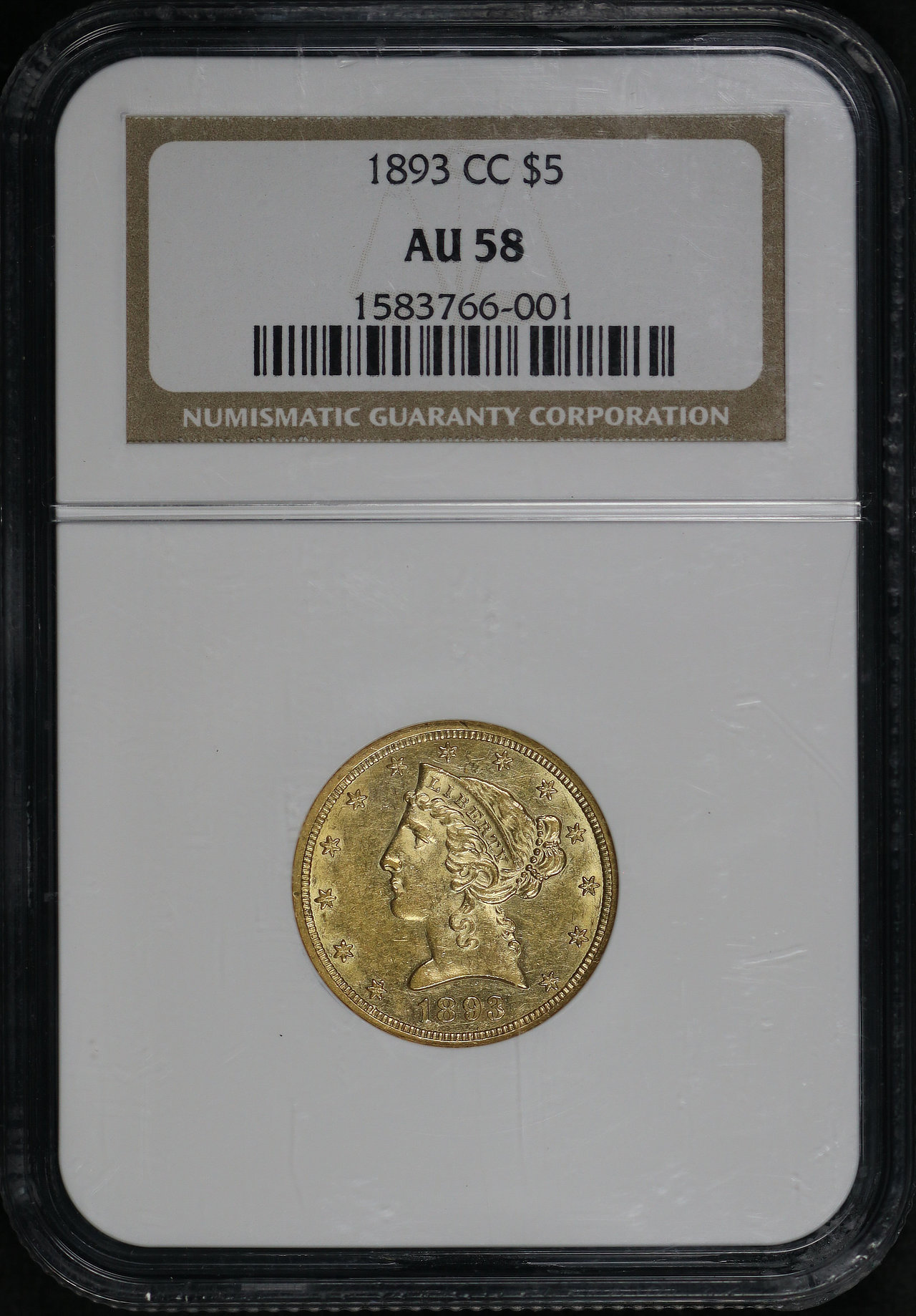1893-CC Liberty Head $5 NGC AU-58.