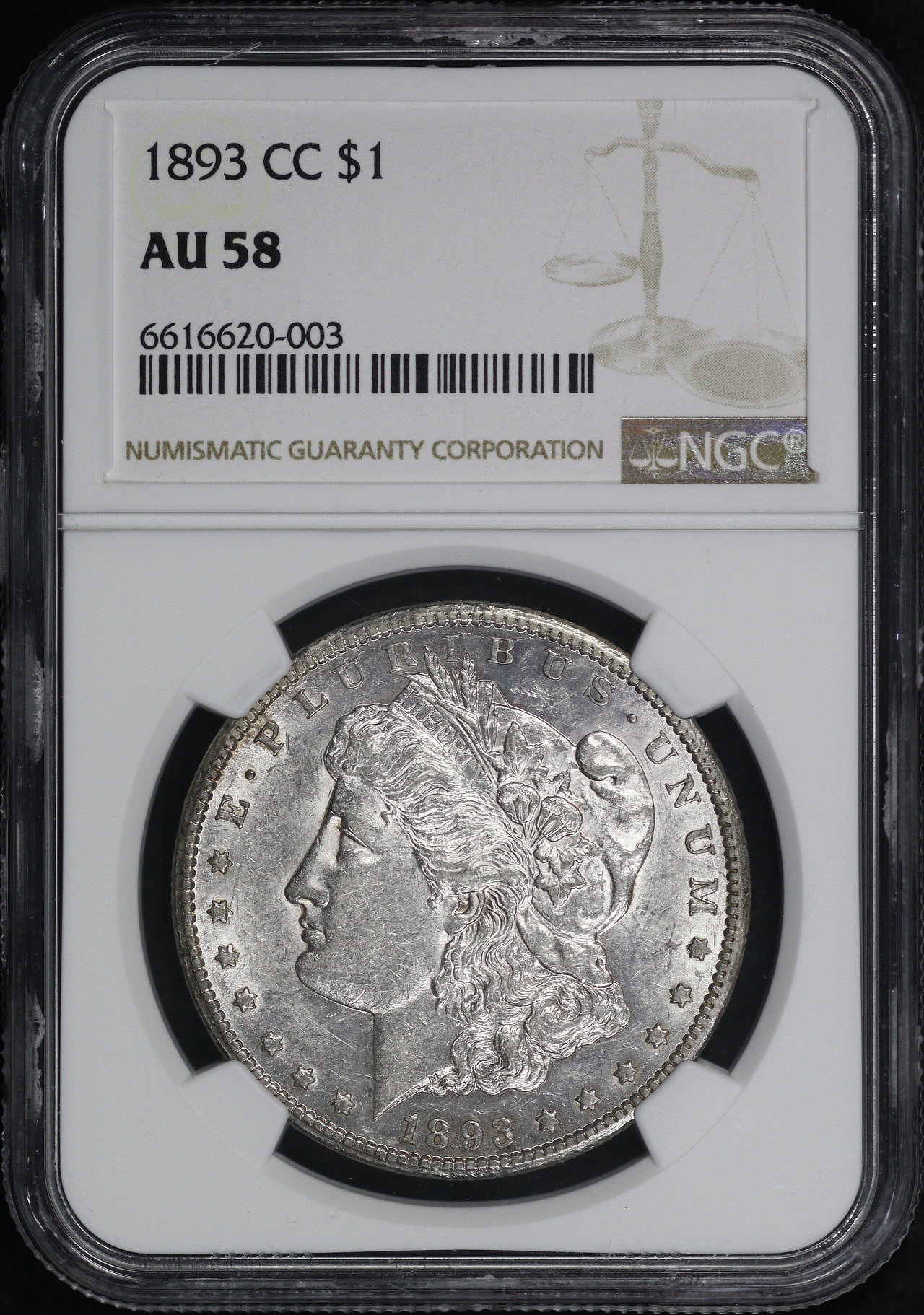 1893-CC Morgan Dollar NGC AU-58.