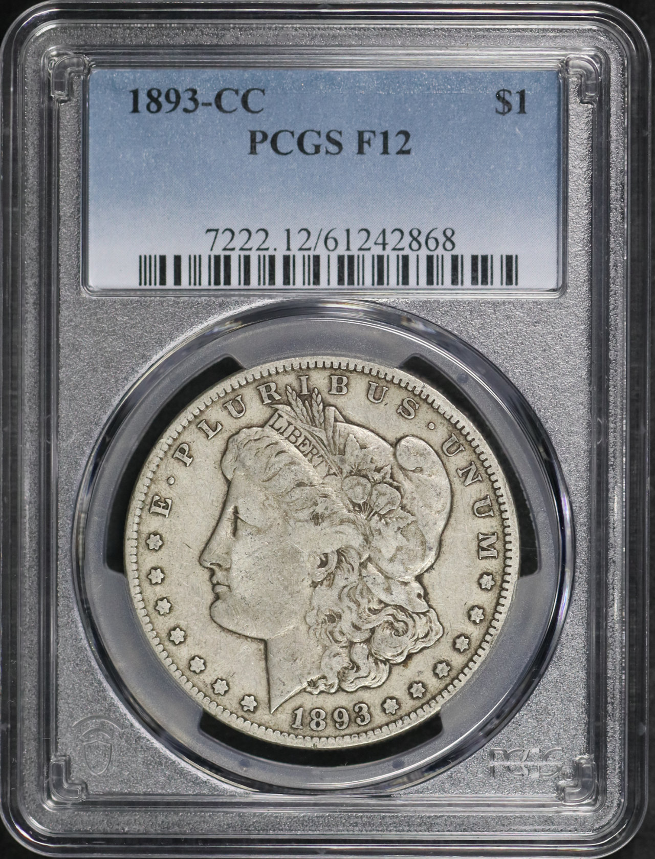 1893-CC Morgan Dollar PCGS F-12 designed by George T. Morgan.