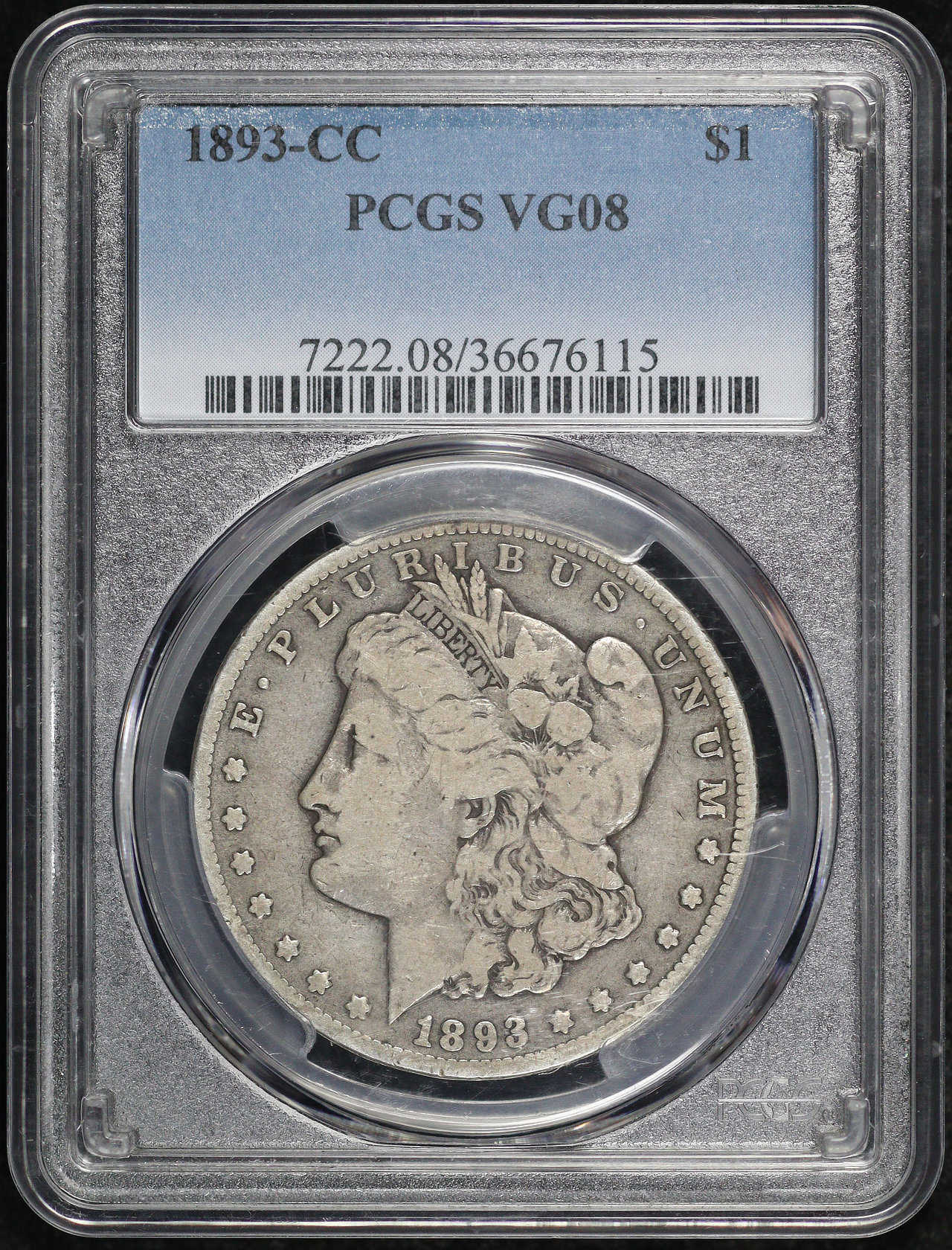 1893-CC Morgan Dollar PCGS VG-08 designed by George T. Morgan.