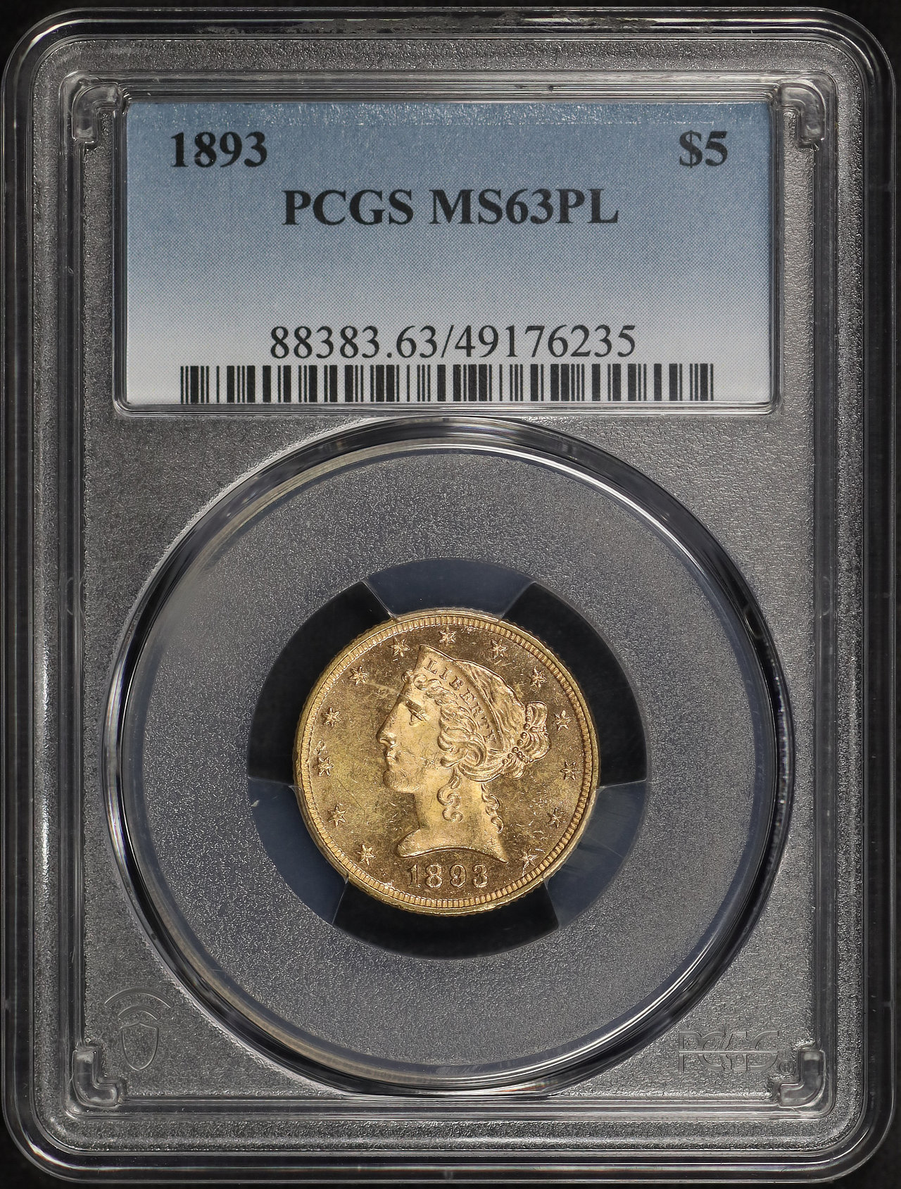 1893 Liberty Head $5 PCGS MS-63 PL designed by Christian Gobrecht.