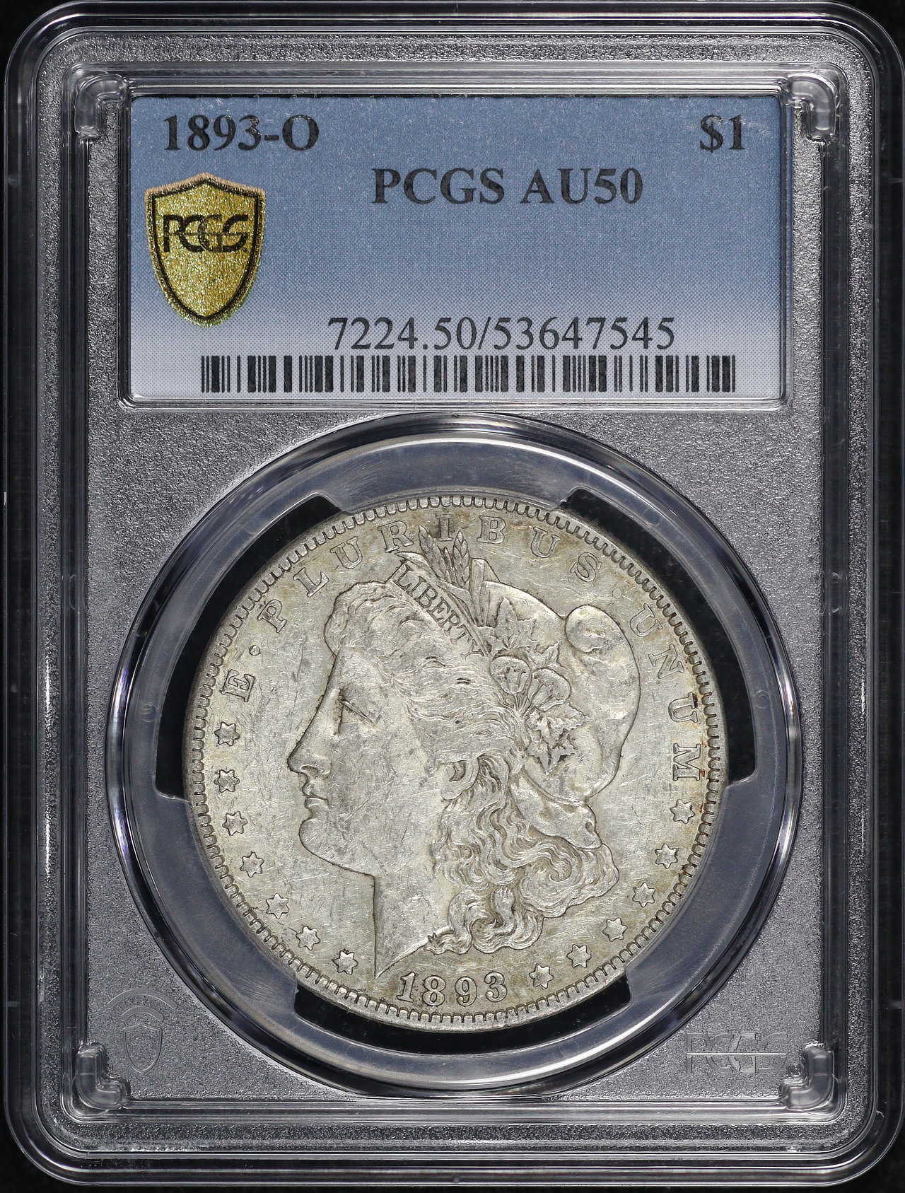 1893-O Morgan Dollar PCGS AU-50 designed by George T. Morgan.