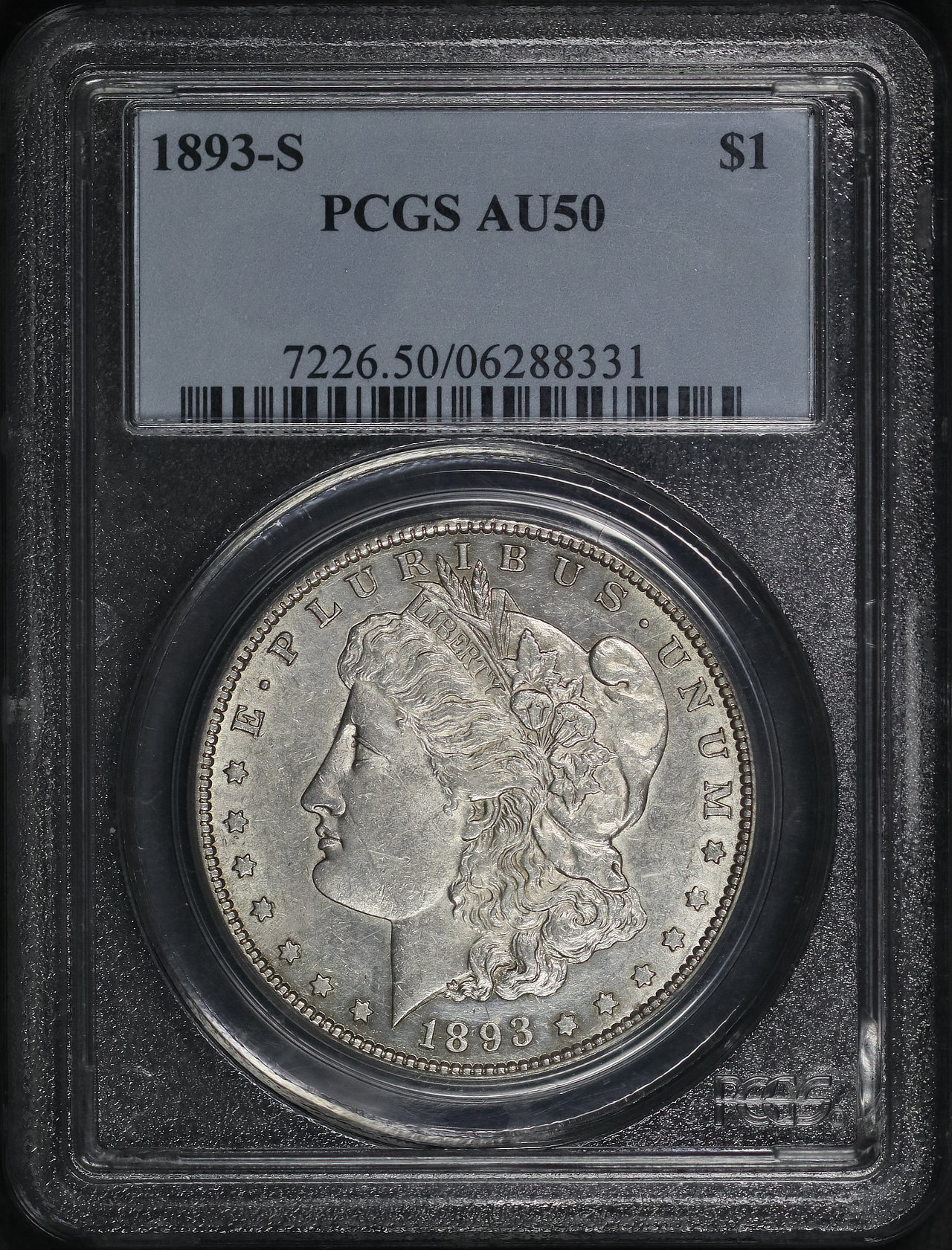 1893-S Morgan Dollar PCGS AU-50 designed by George T. Morgan.