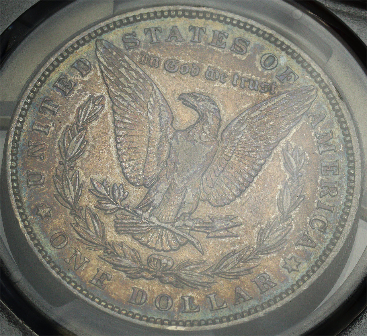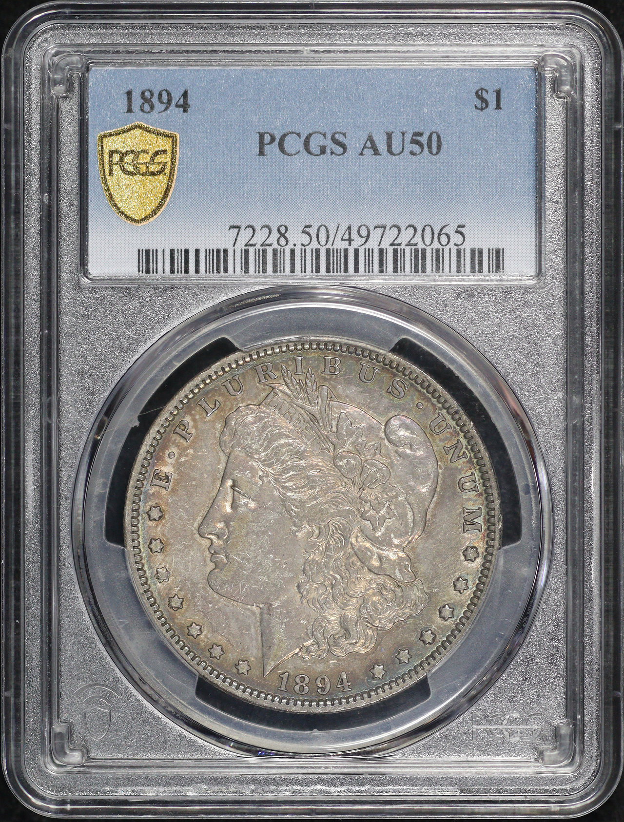 1894 Morgan Dollar PCGS AU-50 designed by George T. Morgan. Both sides display dark, smoky blue and sunset hue toning!