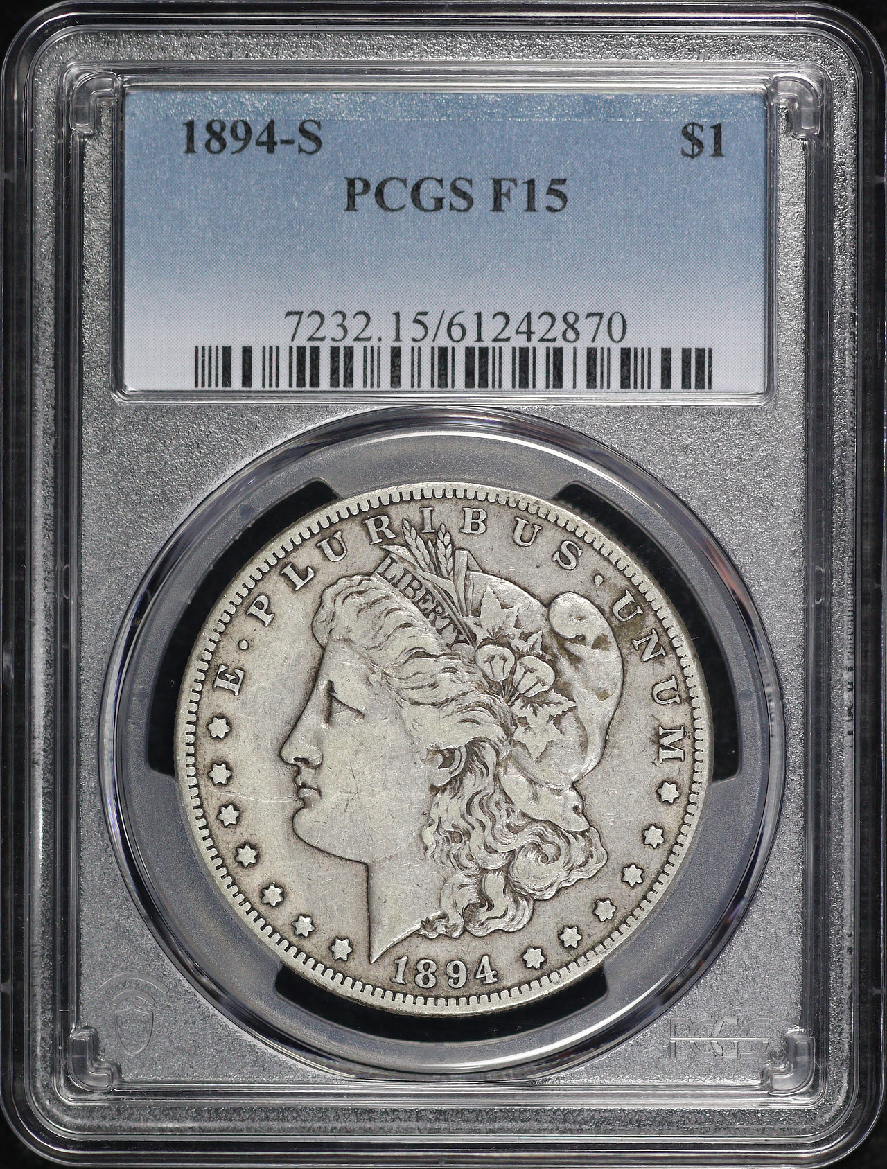 1894-S Morgan Dollar PCGS F-15 designed by George T. Morgan.
