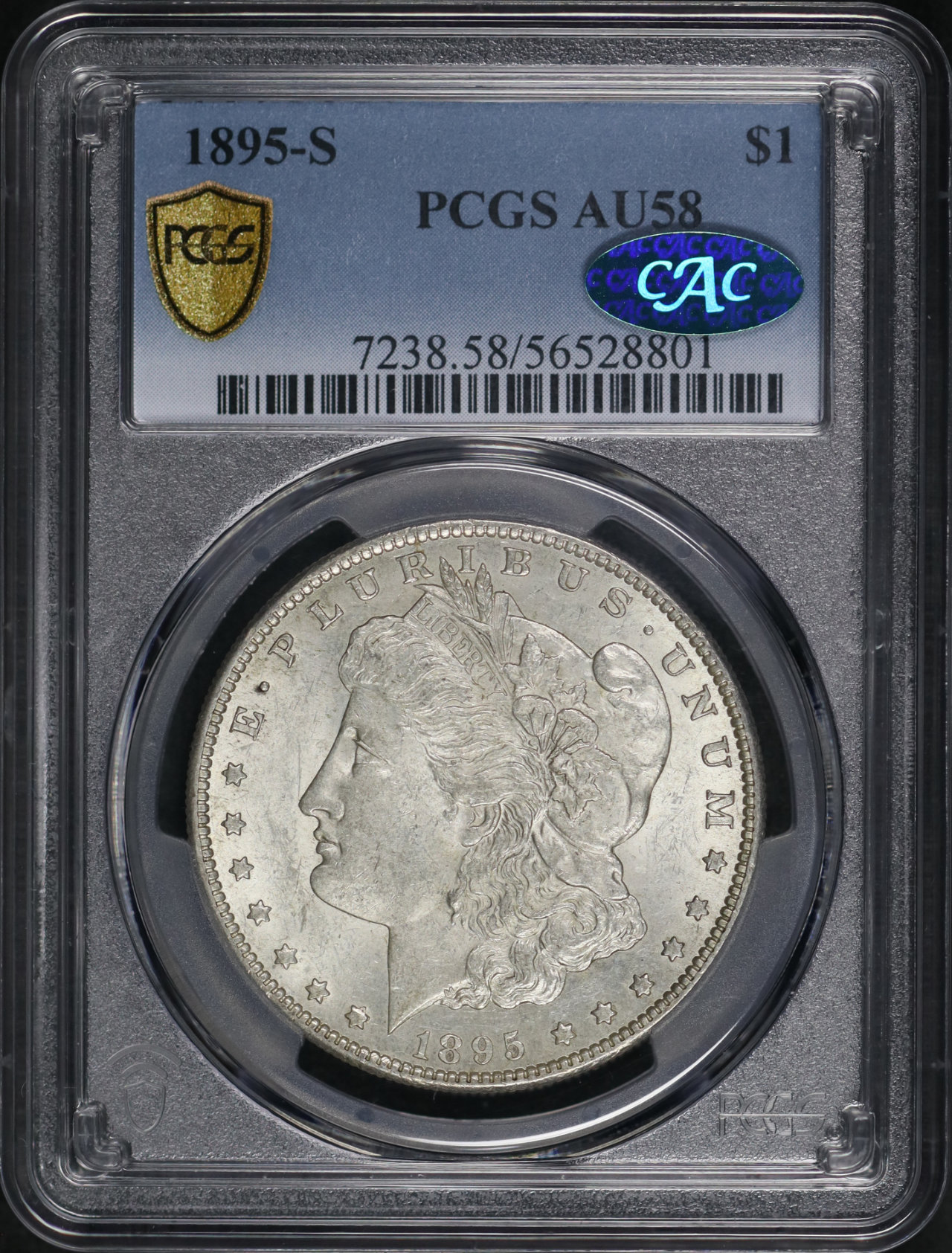 1895-S Morgan Dollar PCGS AU-58 CAC designed by George T. Morgan.