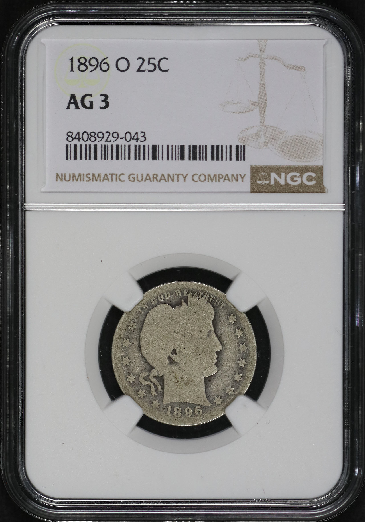 1896-O Barber Quarter NGC AG-3