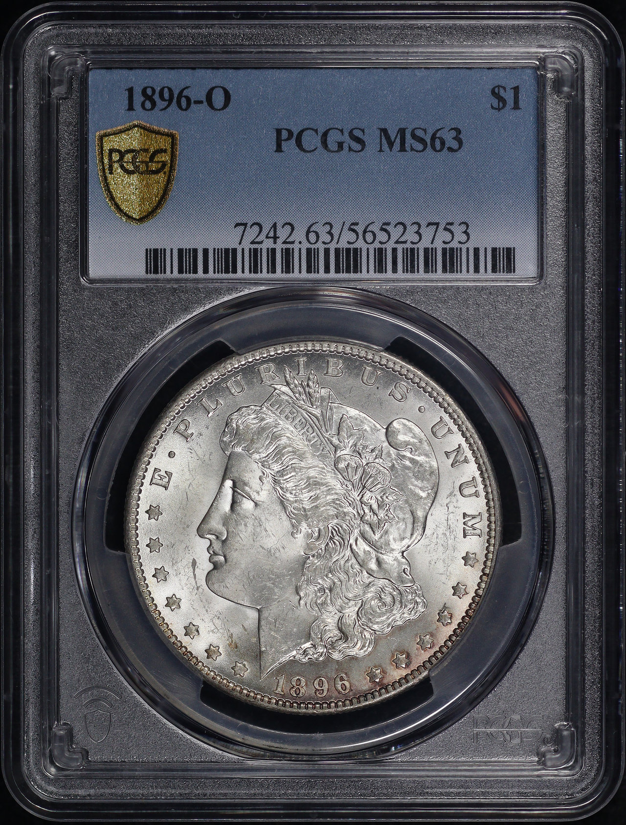 1896-O Morgan Dollar PCGS MS-63 designed by George T. Morgan. Both sides display very faint violet hue toning along the rim.