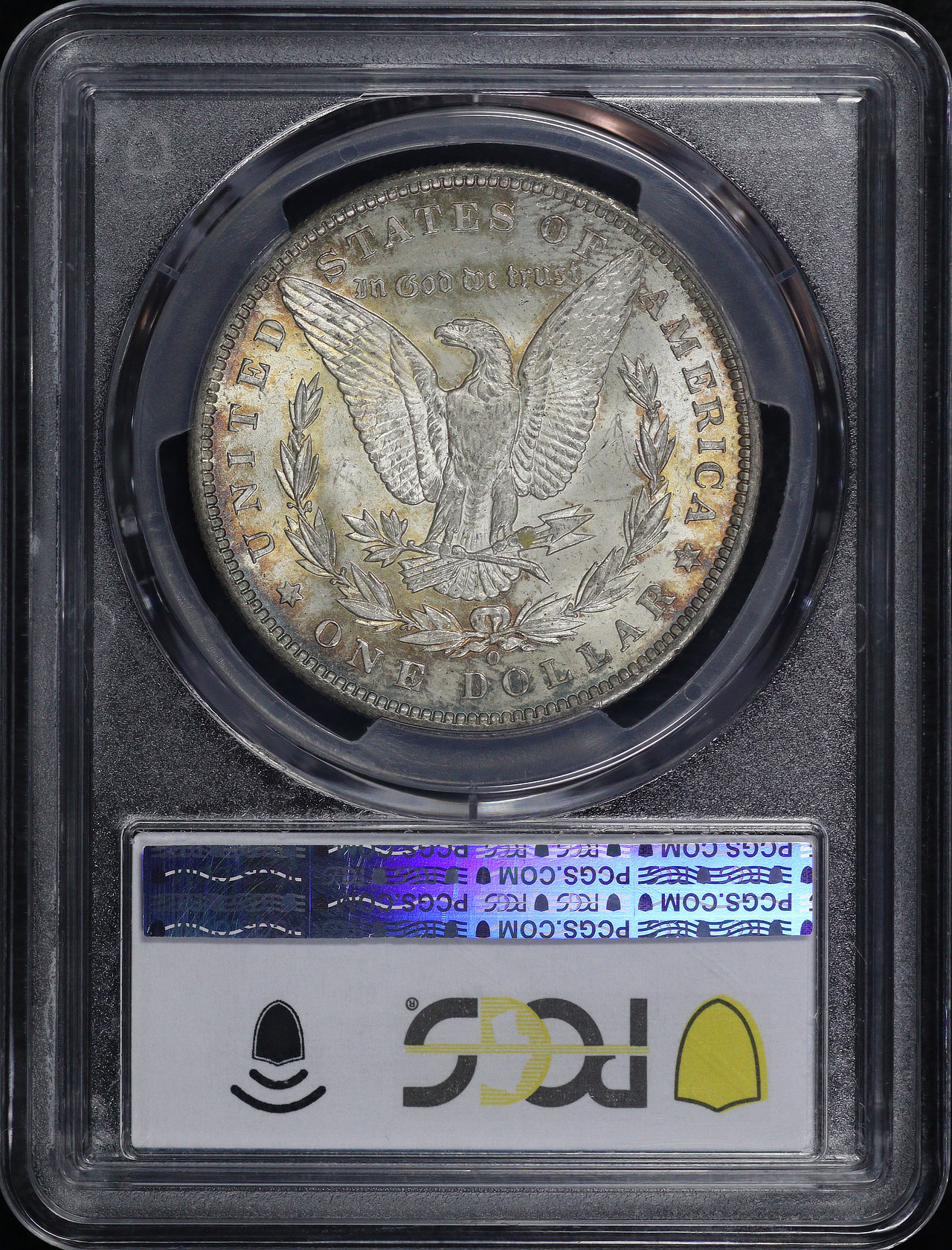 1896-O Morgan Dollar PCGS MS-64 designed by George T. Morgan. Both sides display remarkable blue and sunset hue toning with a nice pattern on the obverse going inward from the rim, possibly from the coin being kept in an envelope!