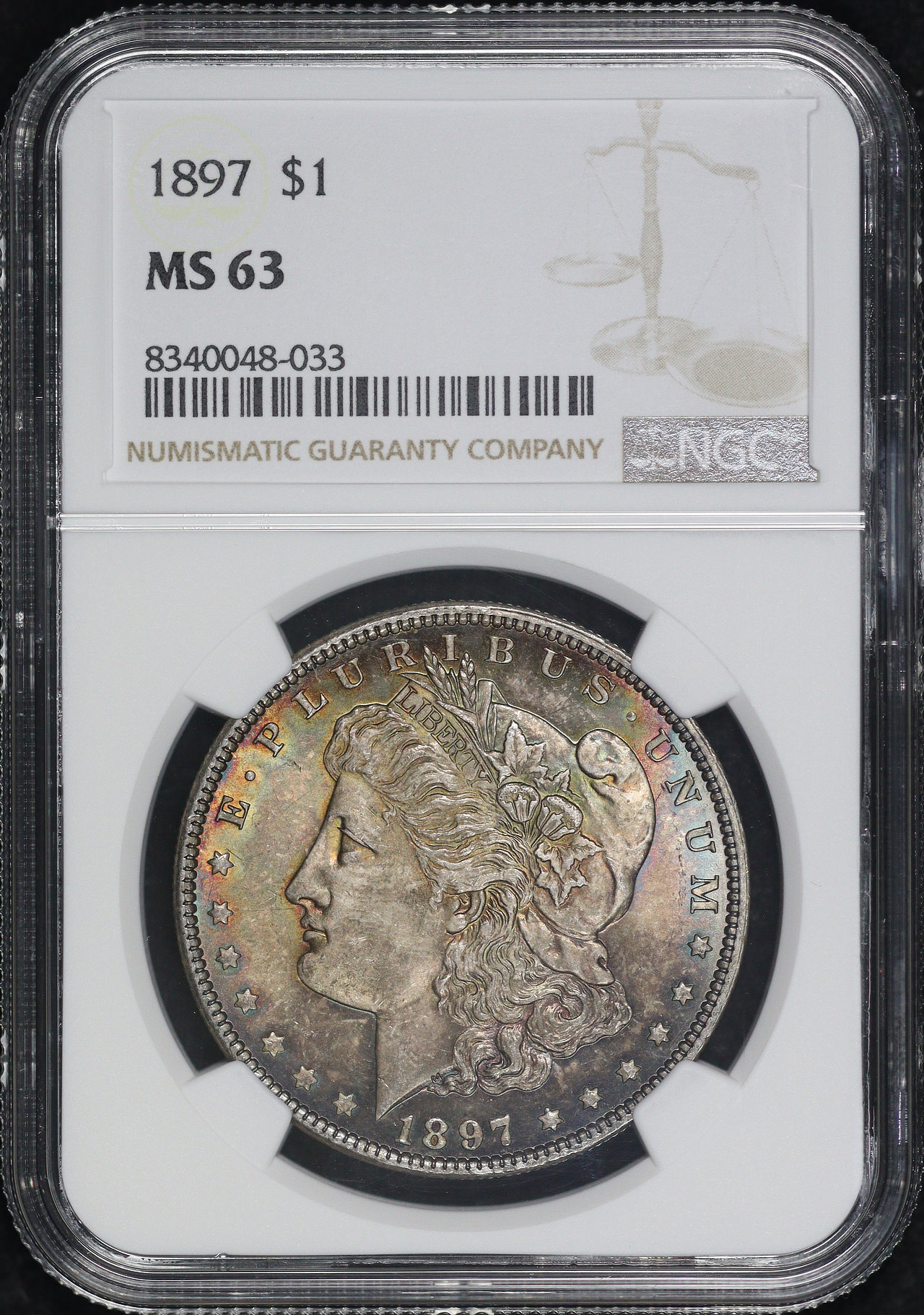 1897 Morgan Dollar NGC MS-63 – Smoky Blue & Crimson Hue Toning!