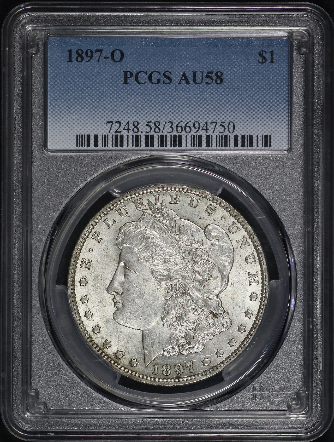 1897-O Morgan Dollar PCGS AU-58 designed by George T. Morgan.