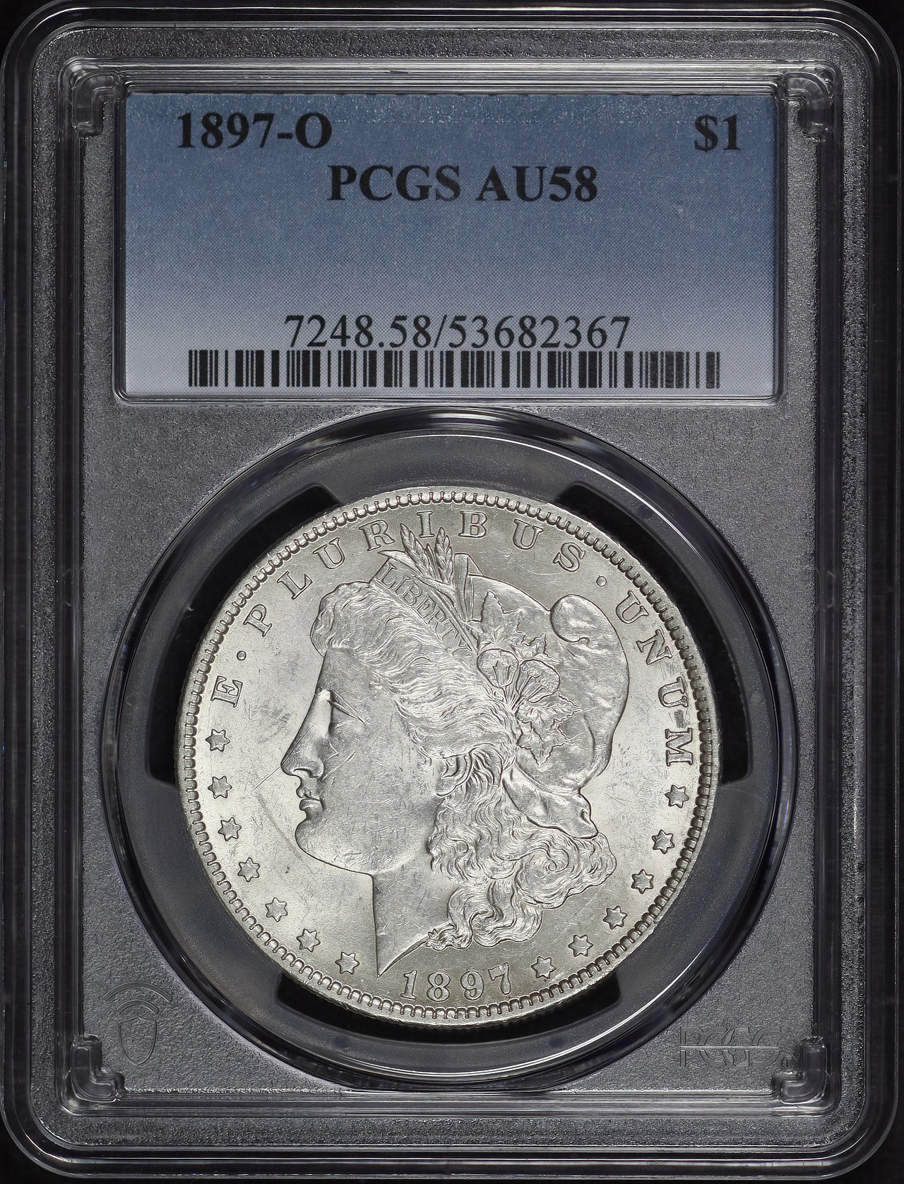 1897-O Morgan Dollar PCGS AU-58 designed by George T. Morgan.
