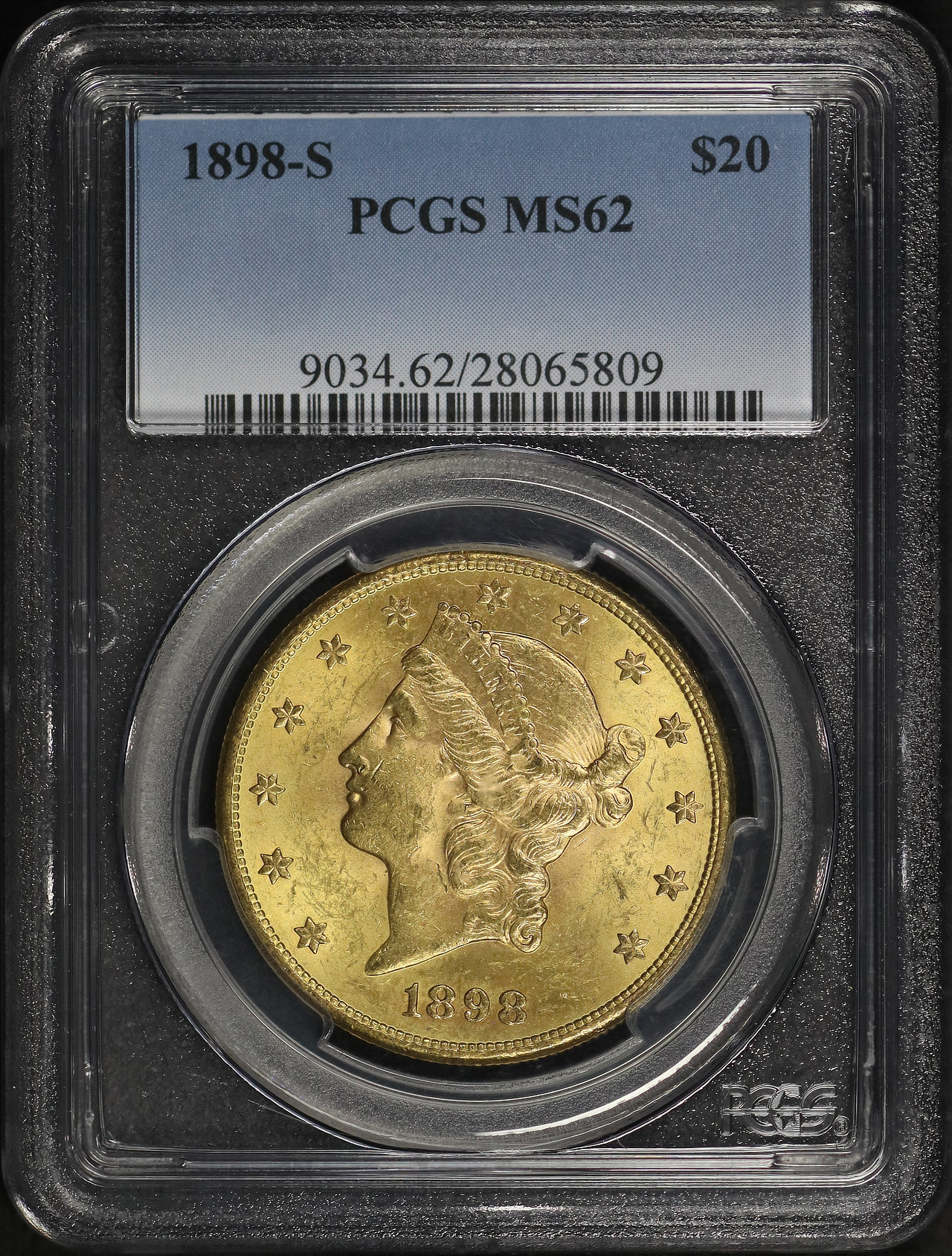 1898-S Liberty Head $20 Type 3 PCGS MS-62 designed by James Barton Longacre.