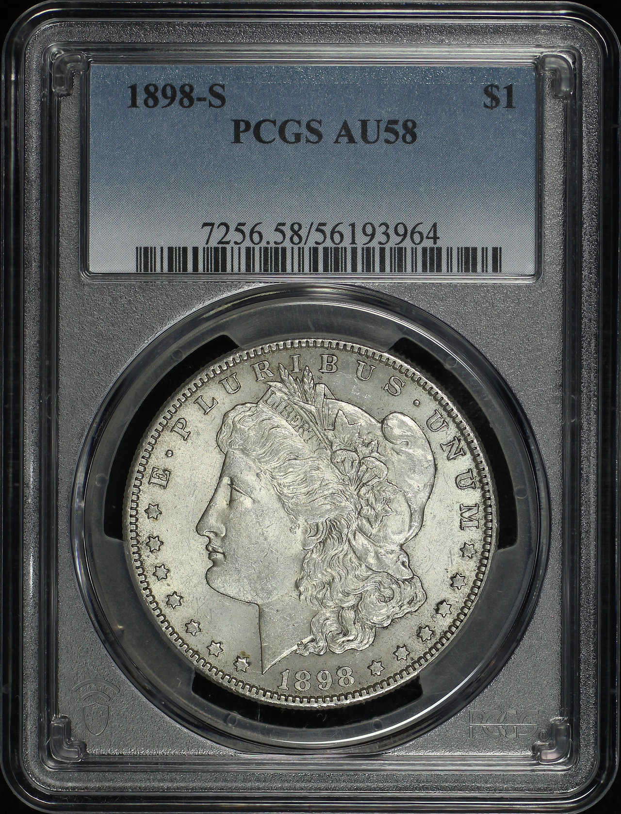 1898-S Morgan Dollar PCGS AU-58 designed by George T. Morgan.