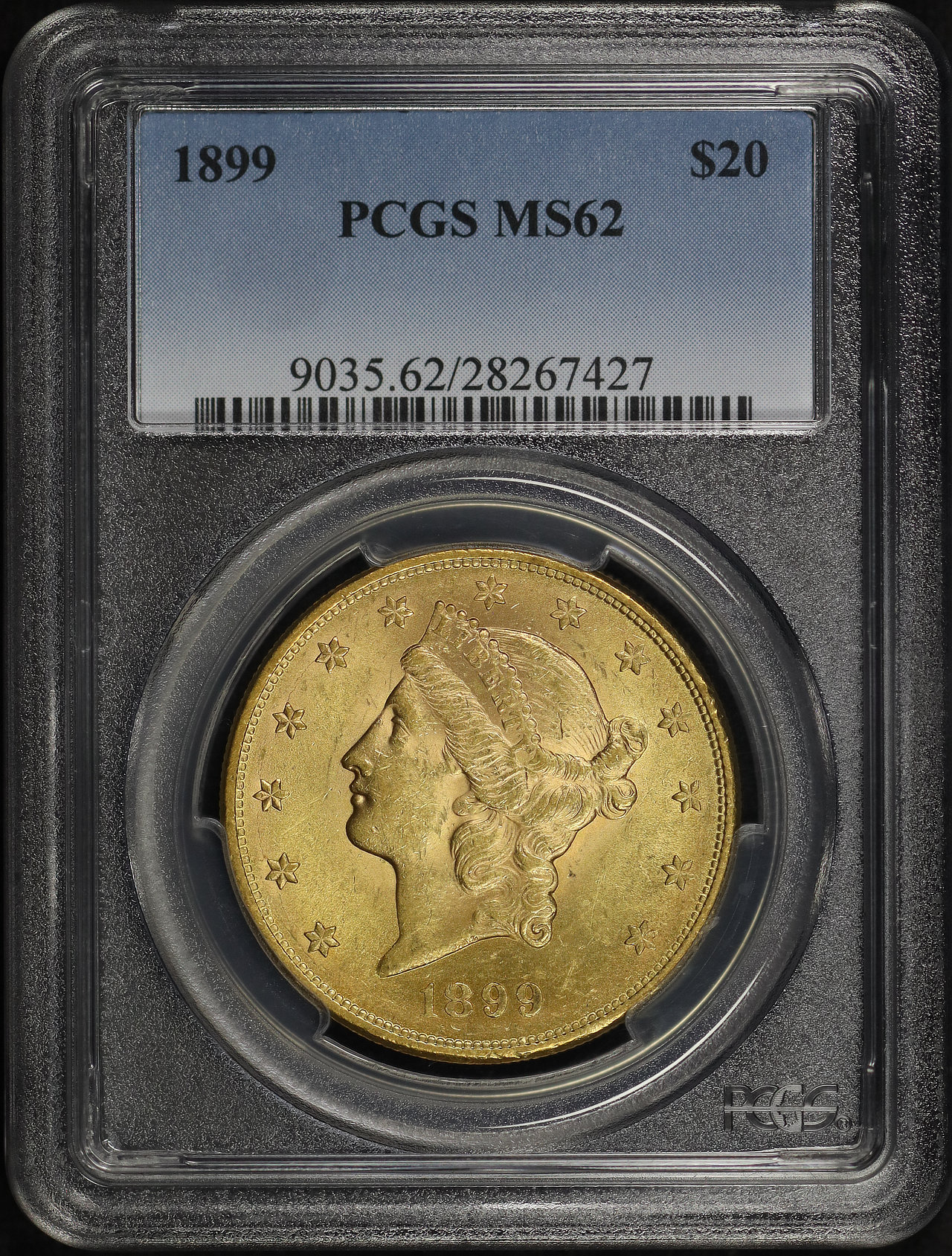 1899 Liberty Head $20 Type 3 PCGS MS-62 designed by James Barton Longacre.