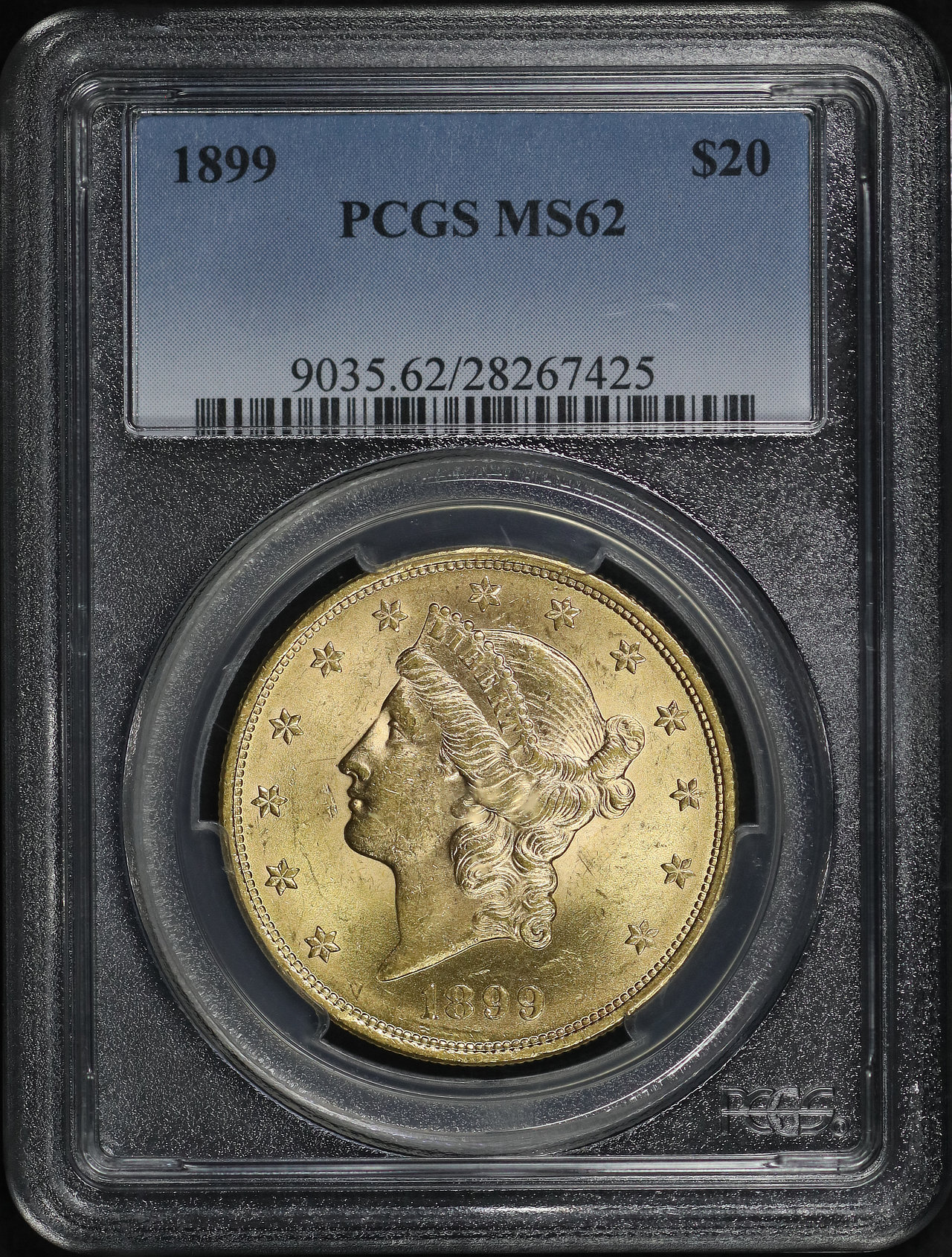1899 Liberty Head $20 Type 3 PCGS MS-62 designed by James Barton Longacre.