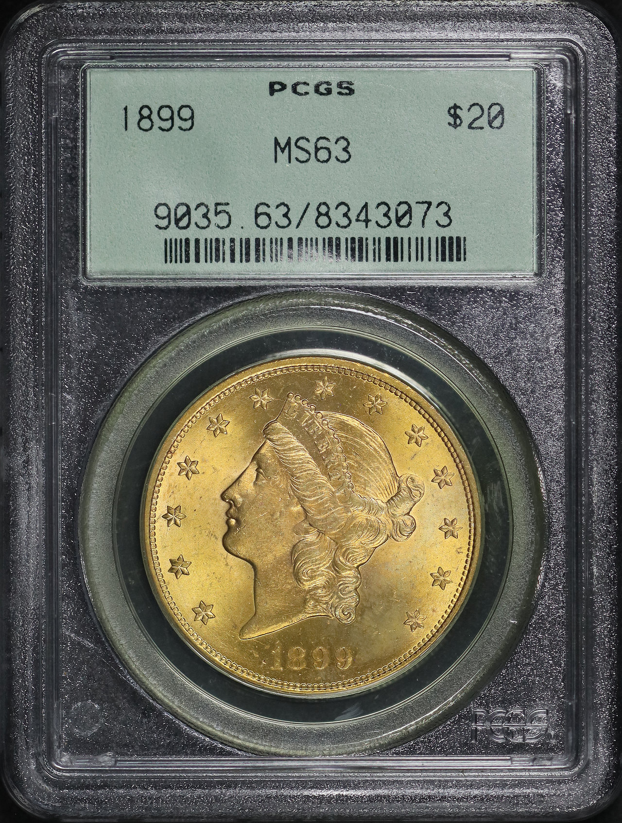 1899 Liberty Head $20 Type 3 PCGS MS-63 Old Green Holder designed by James Barton Longacre.