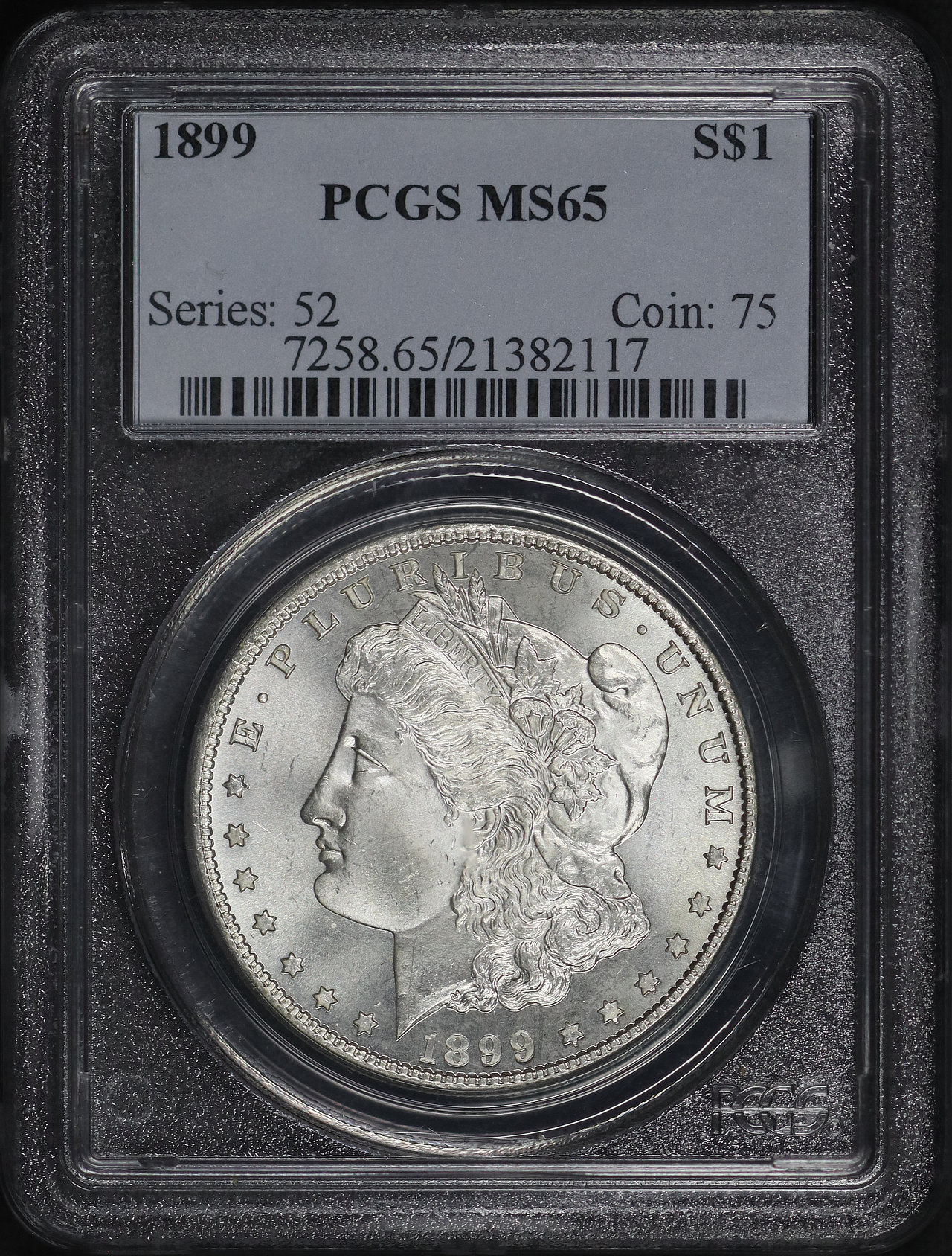 1899 Morgan Dollar PCGS MS-65 designed by George T. Morgan.