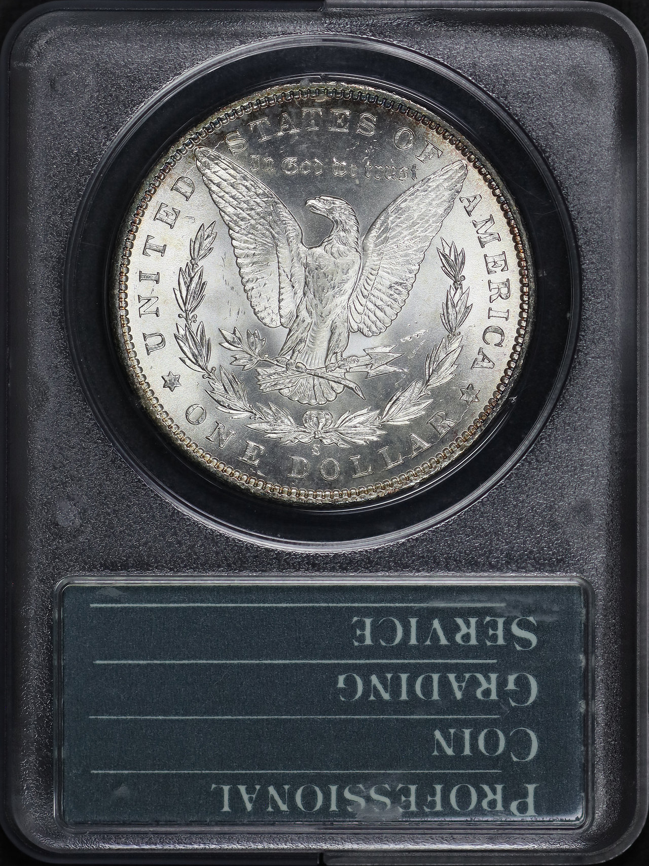 1899-S Morgan Dollar PCGS MS-63 CAC Old Rattler Holder designed by George T. Morgan.