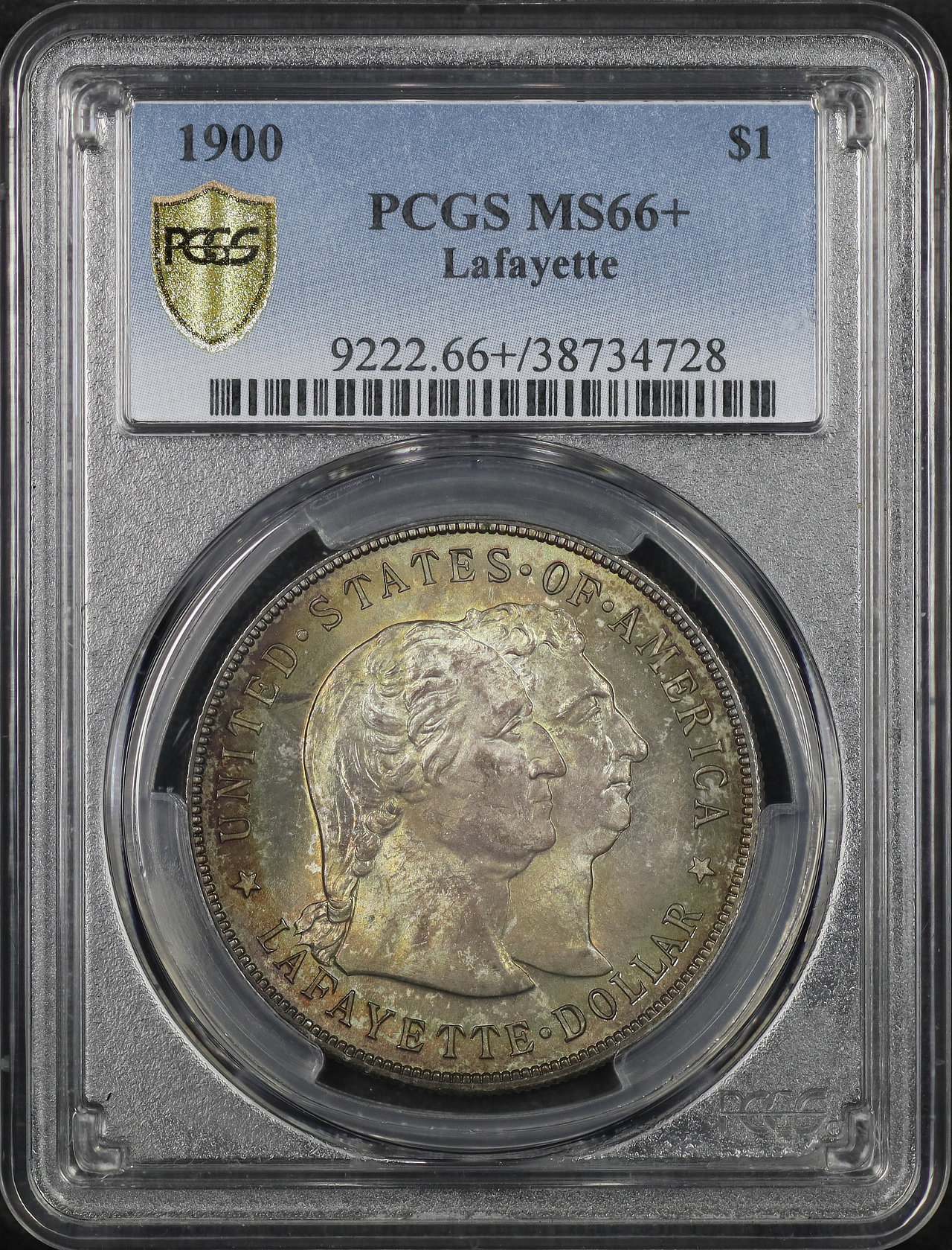 1900 $1 Lafayette Silver Commemorative PCGS MS-66+ designed by Charles E. Barber.