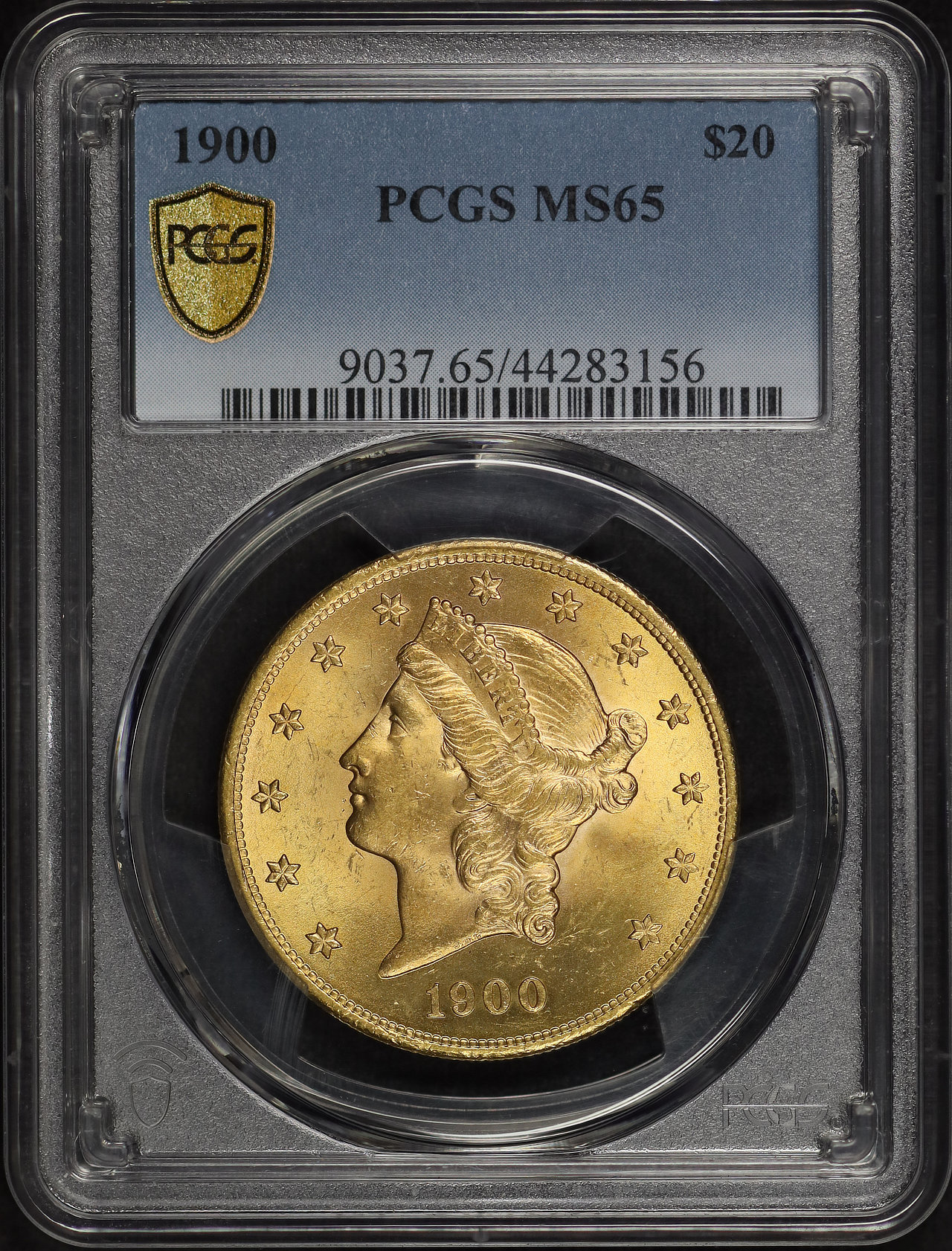 1900 Liberty Head $20 Type 3 PCGS MS-65 designed by James Barton Longacre.
