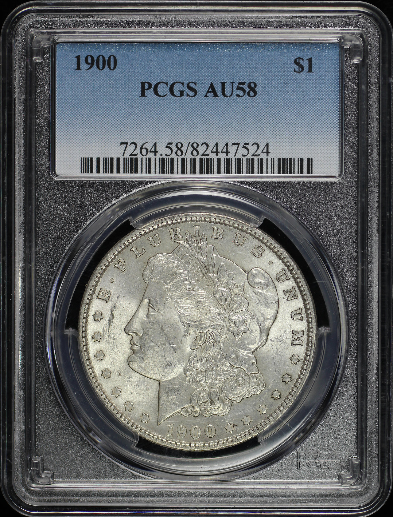 1900 Morgan Dollar PCGS AU-58 designed by George T. Morgan.