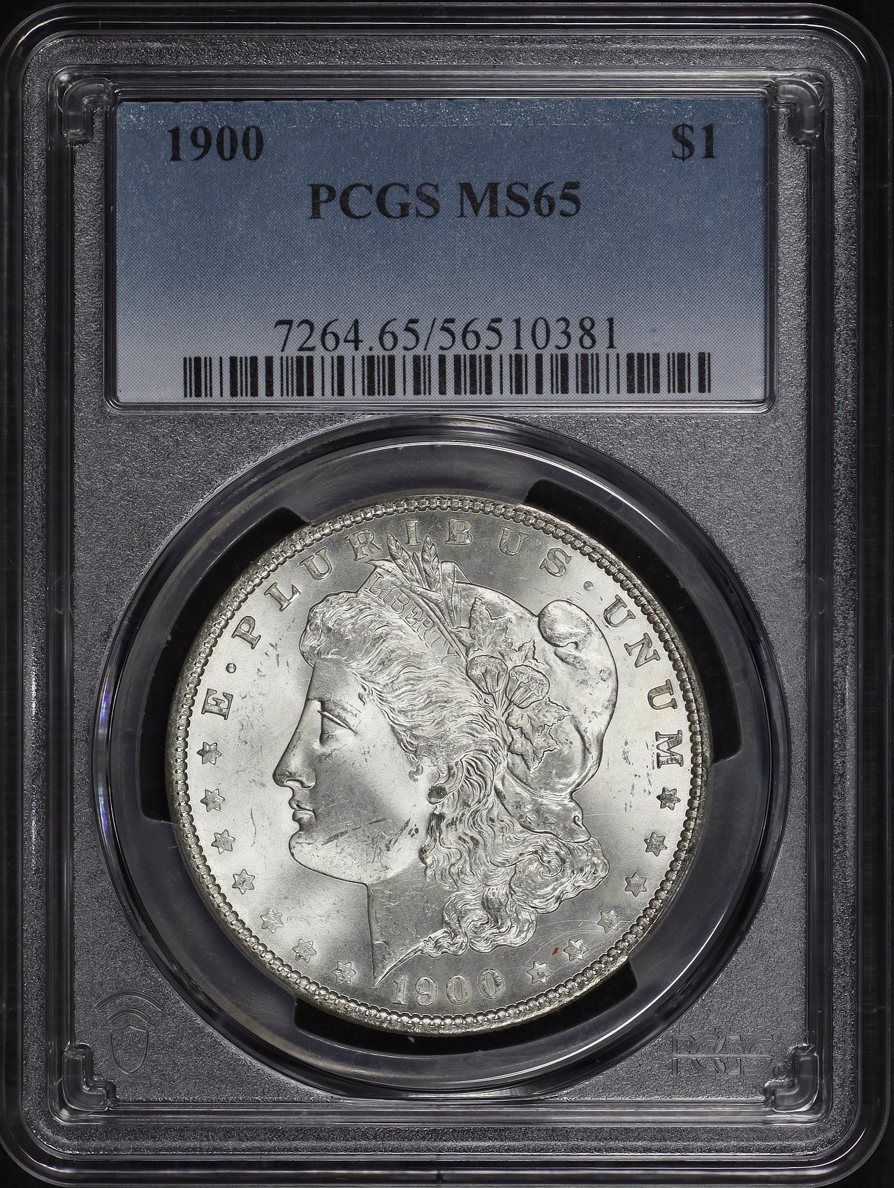 1900 Morgan Dollar PCGS MS-65 designed by George T. Morgan.