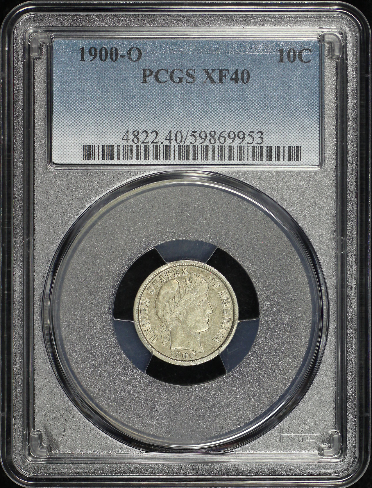 1900-O Barber Dime PCGS XF-40 designed by Charles E. Barber.