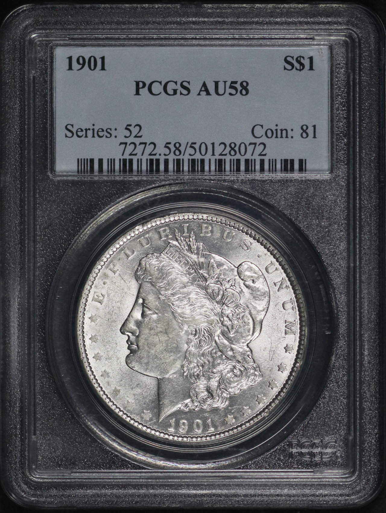 1901 Morgan Dollar PCGS AU-58 designed by George T. Morgan.