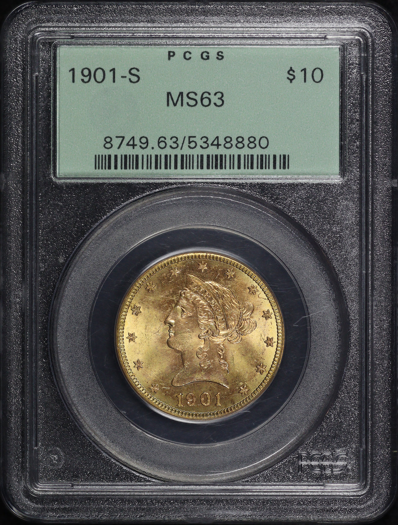 1901-S Liberty Head $10 PCGS MS-63 Old Green Holder designed by Christian Gobrecht.