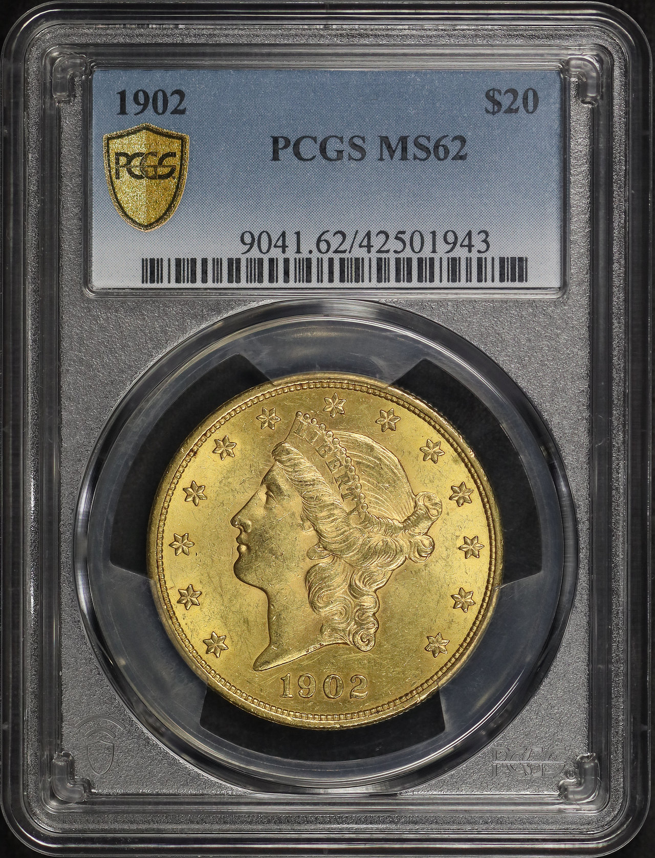 1902 Liberty Head $20 Type 3 PCGS MS-62 designed by James Barton Longacre.
