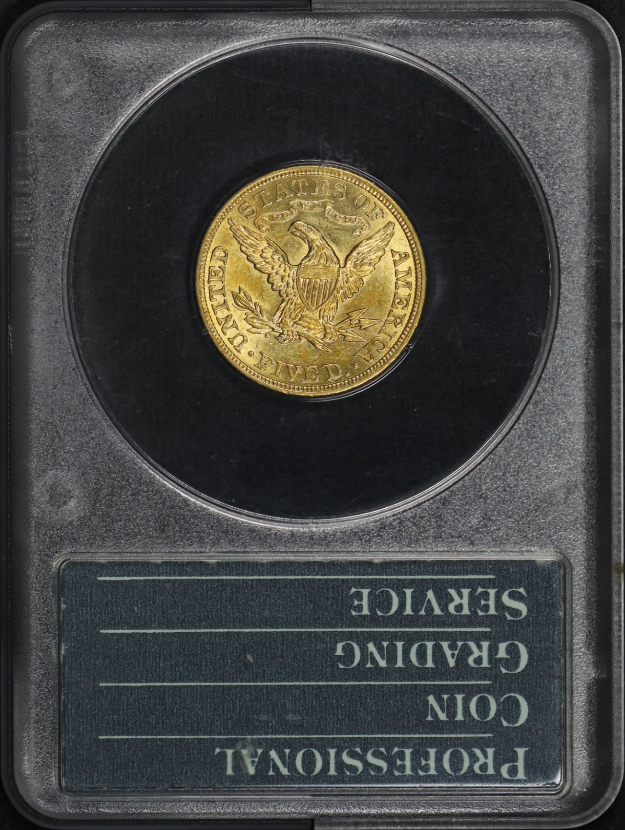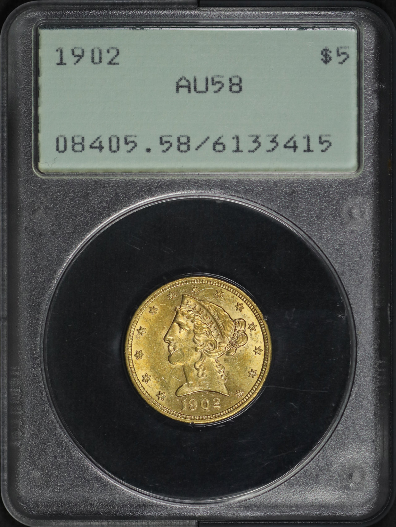 1902 Liberty Head $5 PCGS AU-58 designed by Christian Gobrecht.