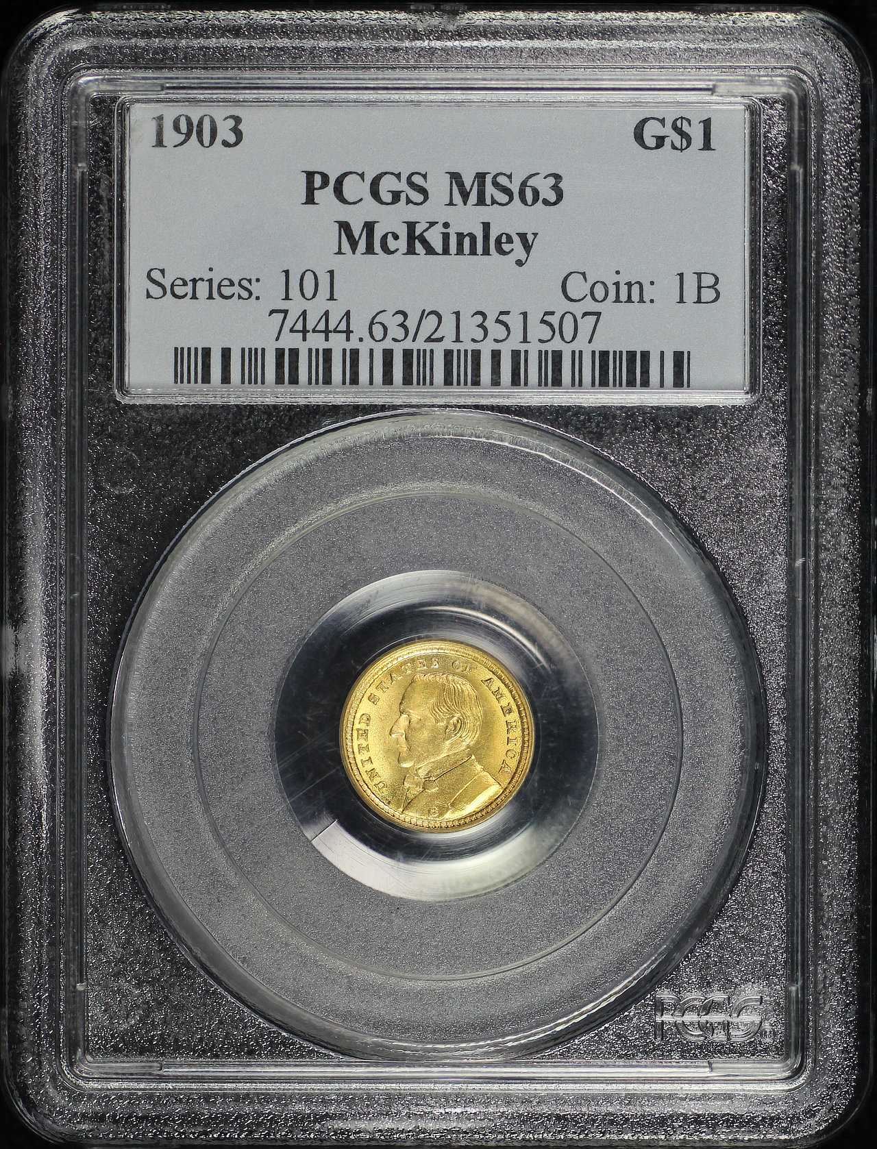 1903 G$1 LA Purch-McKinley Gold Commemorative PCGS MS-63 designed by Charles E. Barber.