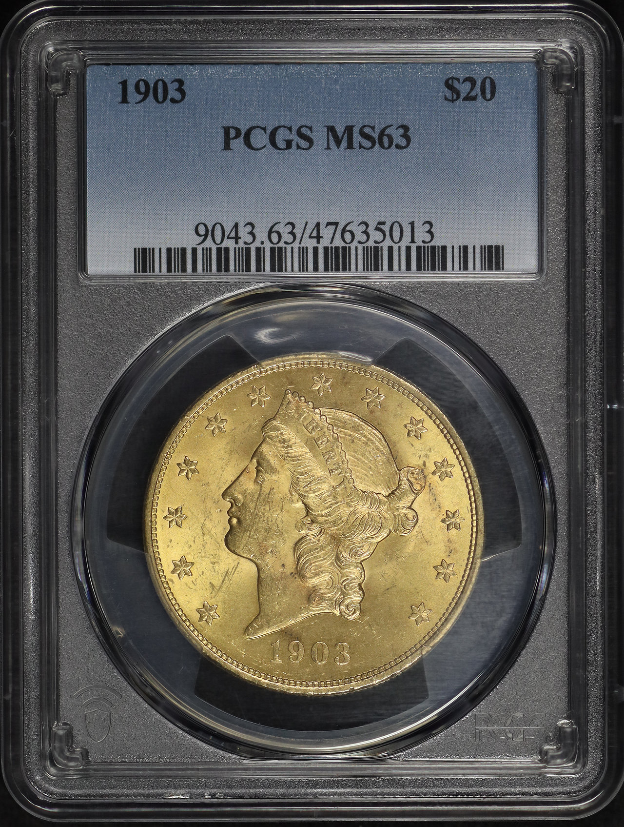 1903 Liberty Head $20 Type 3 PCGS MS-63 designed by James Barton Longacre.