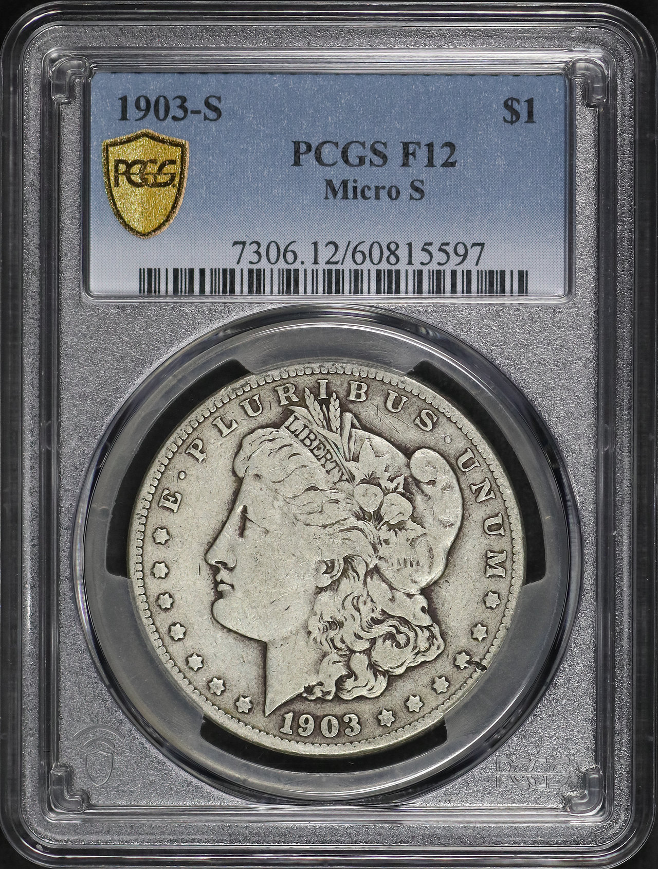 1903-S Morgan Dollar Micro S PCGS F-12 designed by George T. Morgan.
