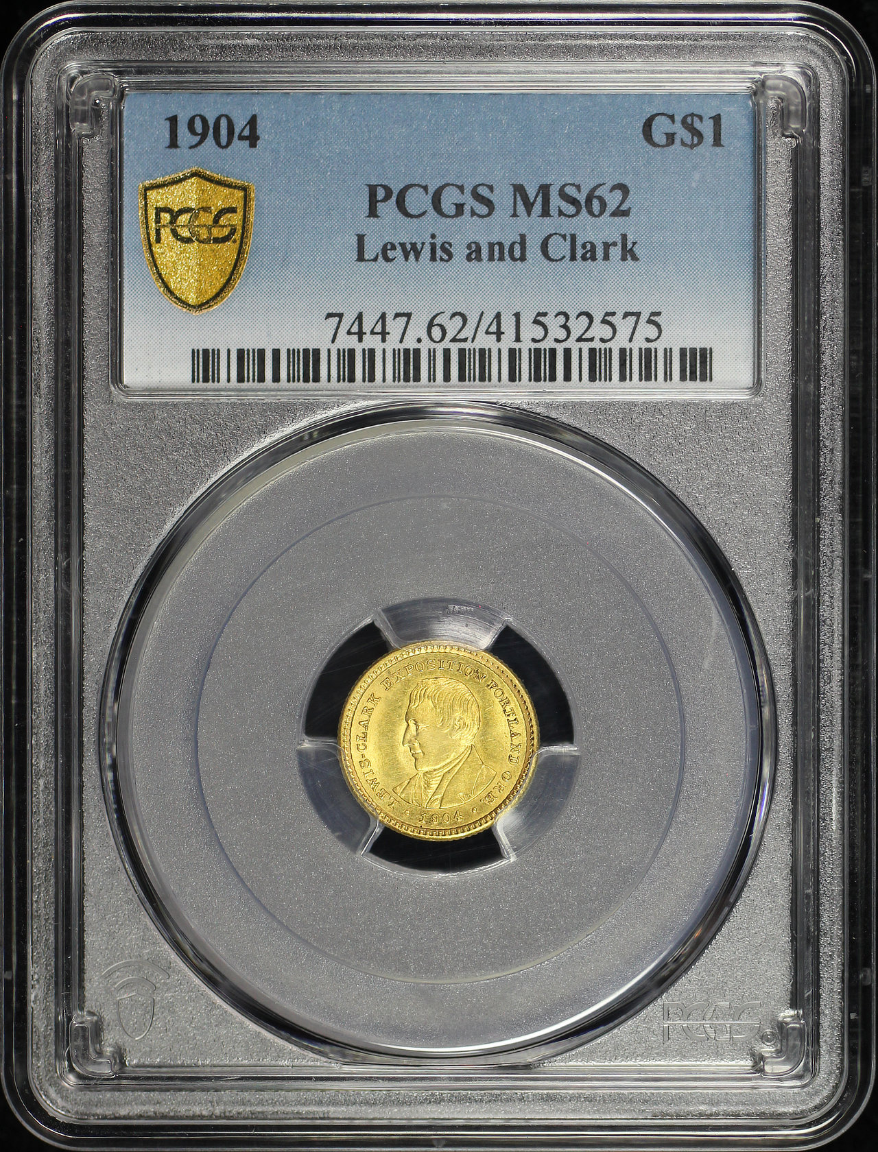 1904 G$1 Lewis and Clark Gold Commemorative PCGS MS-62 designed by Charles E. Barber.