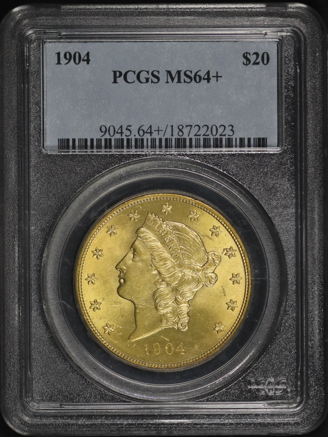 1904 Liberty Head $20 Type 3 PCGS MS-64+ designed by James Barton Longacre.