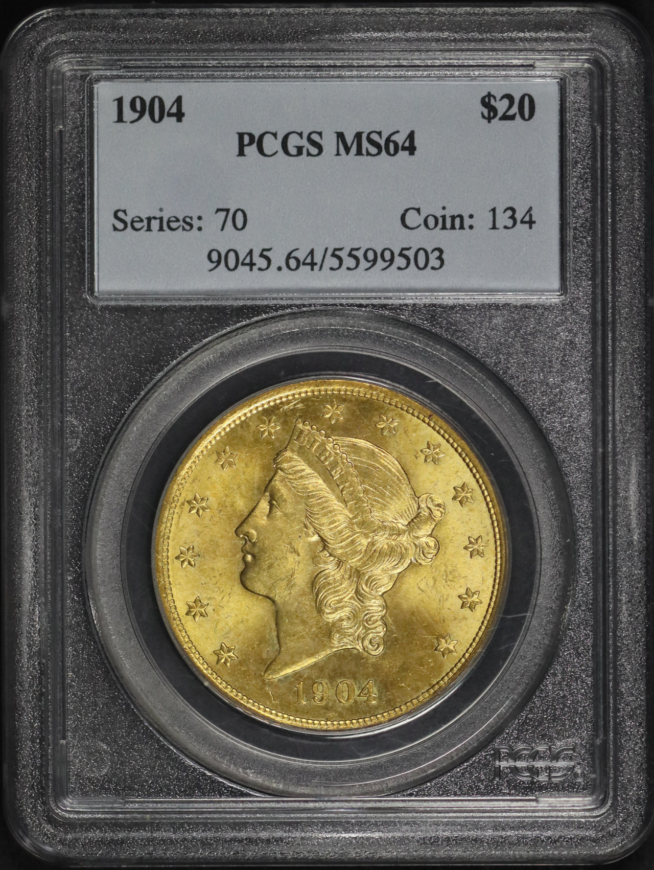 1904 Liberty Head $20 Type 3 PCGS MS-64 designed by James Barton Longacre.